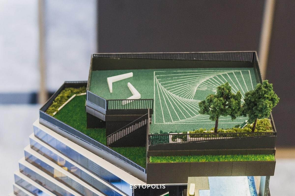 สำหรับพื้นที่ส่วนกลางอย่างสุดท้ายของโครงการจะอยู่ที่ชั้น Rooftop และชั้นหนีไฟ ซึ่งจะเป็นพื้นที่สีเขียวขนาดใหญ่ที่ตั้งอยู่บนชั้นสูงสุด มี Helical Roof Top Garden ไว้ให้ลูกบ้านขึ้นมารับลม ชมวิว หรือนั่งเล่นเพลิน ๆ ร่วมกันตามความต้องการ