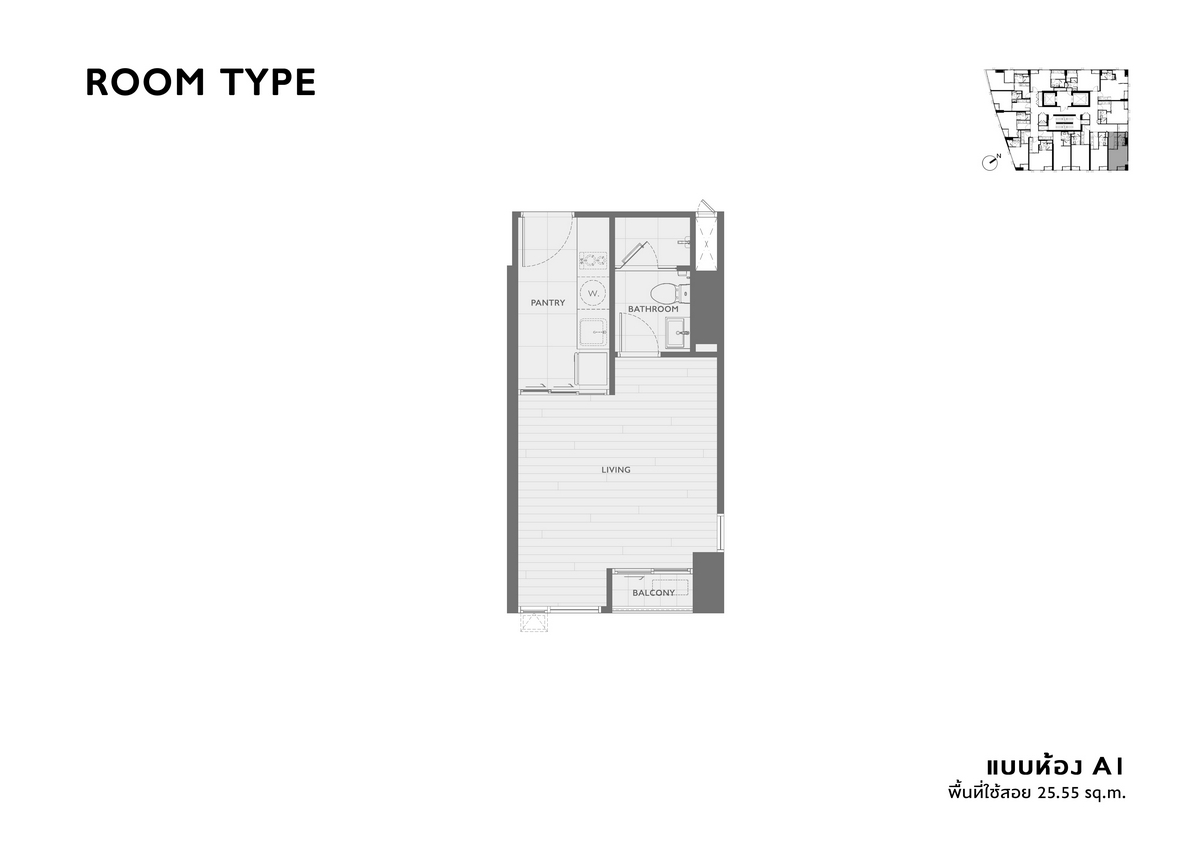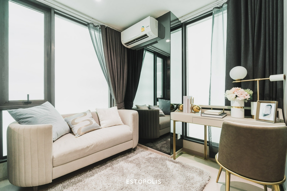- จุดเด่นของห้อง Type นี้จะมีพื้นที่ห้องนั่งเล่นที่ค่อนข้างกว้างขวาง ดังนั้น คุณจึงสามารถบริหาร และจัดการพื้นที่ให้เหมาะกับไลฟ์สไตล์ได้อย่างลงตัว ไม่ว่าจะเพิ่มชุดโต๊ะรับประทานอาหาร, มุมสำหรับอ่านหนังสือ หรือที่นั่งทำงาน