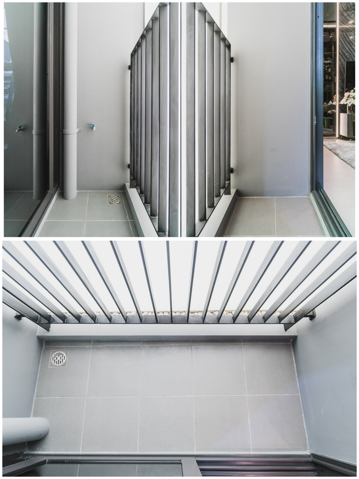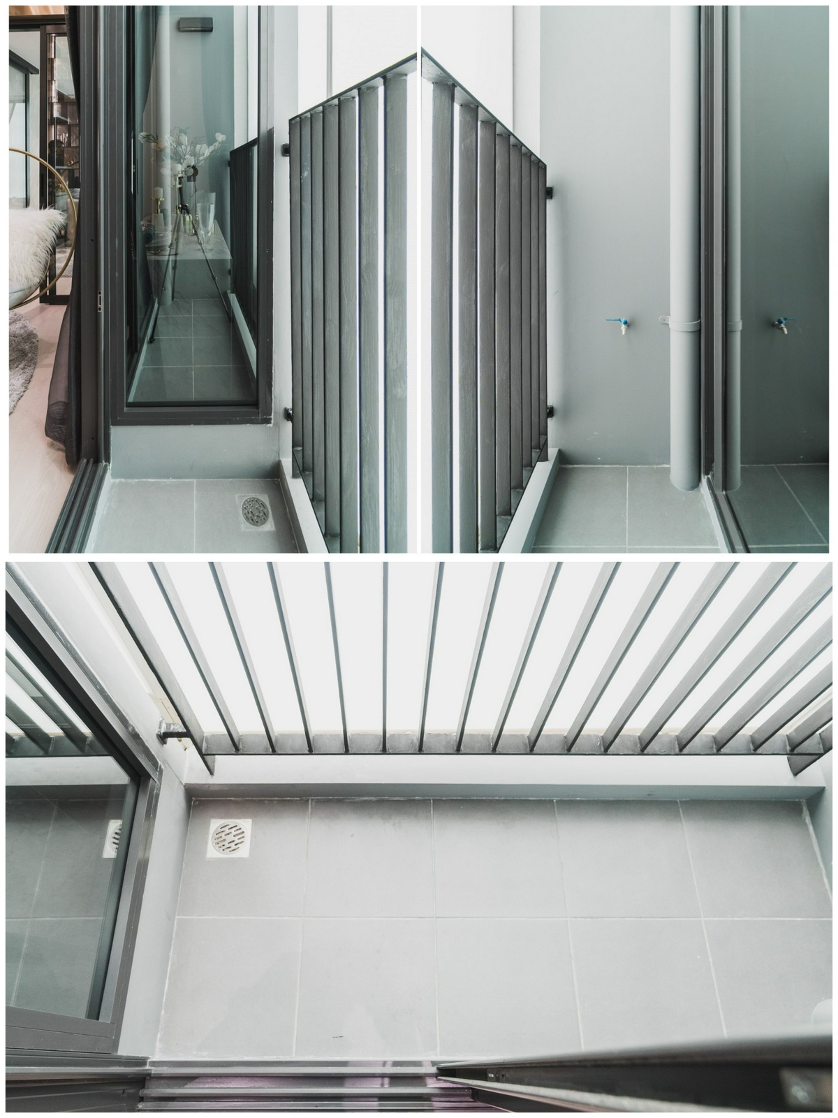 ระเบียงมีพื้นที่ใช้สอยขนาดพอเหมาะสำหรับใช้ตากผ้าได้สบาย ๆ มาพร้อมท่อระบายน้ำ และก๊อกน้ำไว้ให้เราซักล้าง หรือทำความสะอาดสิ่งของได้สะดวกเช่นกัน