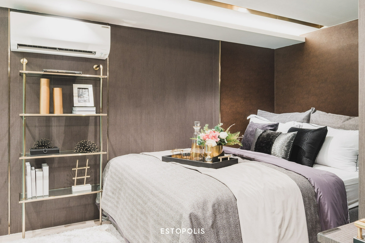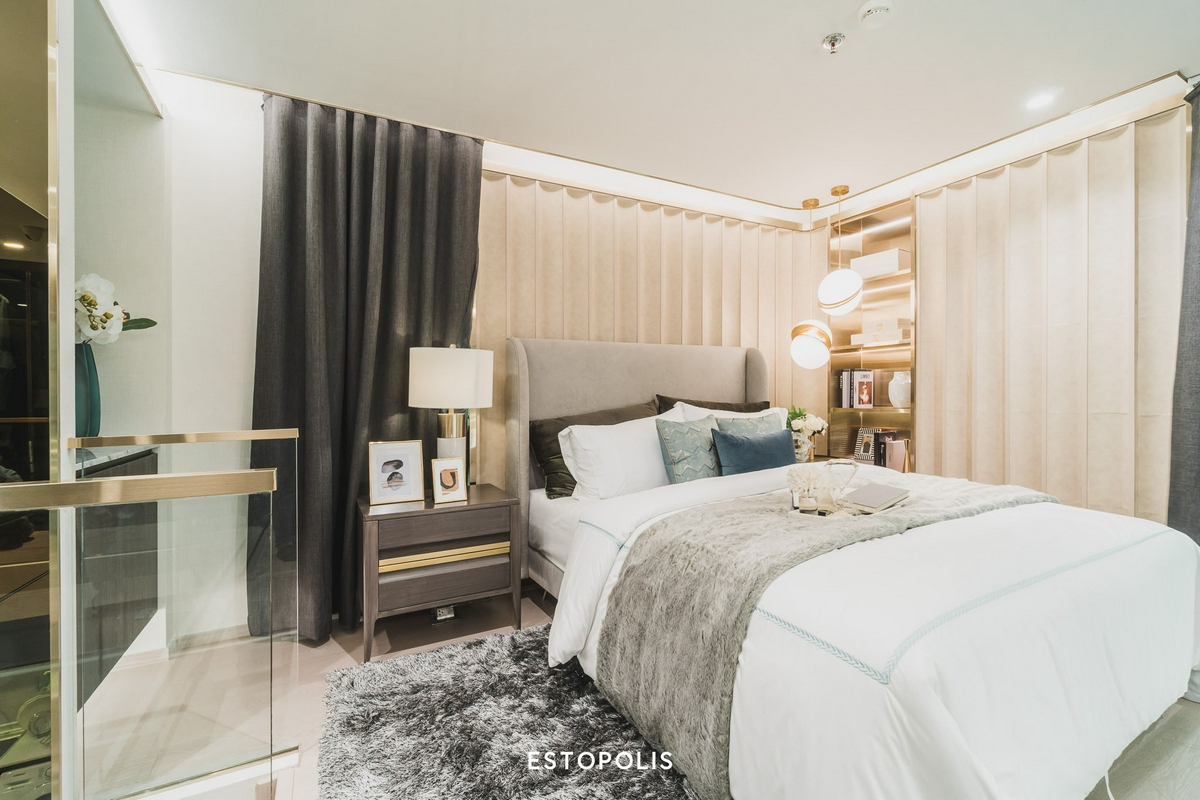 พื้นที่ตรงกลางจะสามารถเลือกวางเตียงได้หลากหลาย ตั้งแต่เตียงขนาดเล็ก 3.5 ฟุต ไปจนถึงเตียงขนาดใหญ่ 6 ฟุต โดยที่ยังมีพื้นที่เหลือให้จัดวางโต๊ะหัวเตียง, บิลต์อินตู้เก็บของ หรือทำโต๊ะเครื่องแป้งพร้อมกระจกเงาที่บริเวณนี้เพิ่มเติมได้