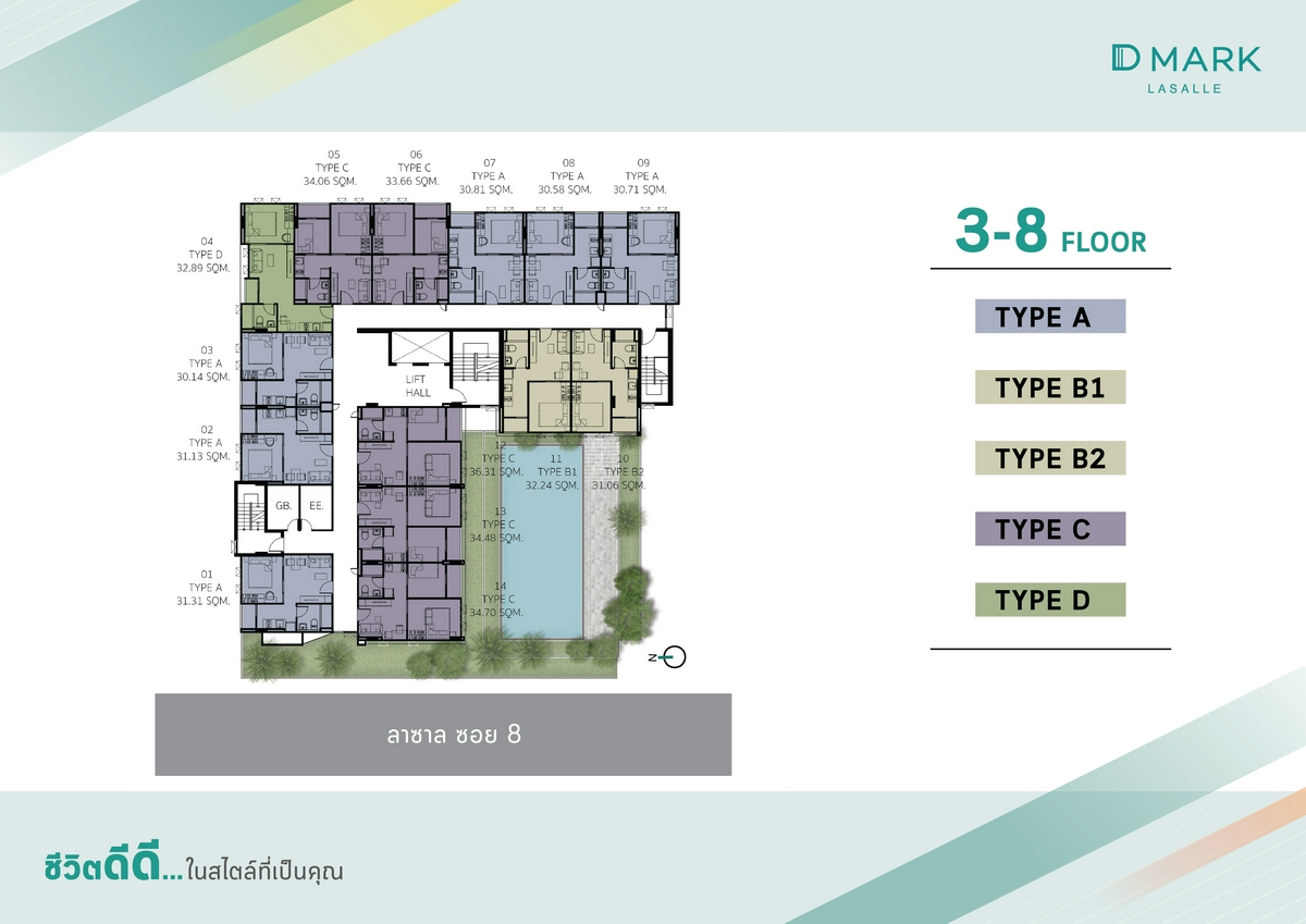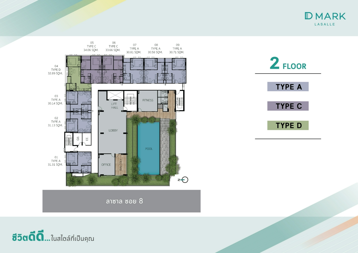 Floor Plan และพื้นที่ส่วนกลางโครงการ D Mark Condo @ Lasalle