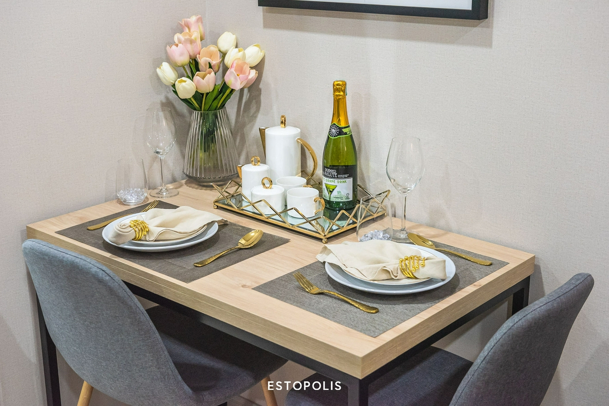 เนื่องจากโครงการ D Mark Condo @ Lasalle ให้โต๊ะมาค่อนข้างใหญ่ หากวันไหนคุณมีแขกแวะมาทานข้าวที่ห้องด้วย แค่ขยับมุมเล็กน้อยก็สามารถใช้ต้อนรับได้อย่างเต็มที่แล้ว