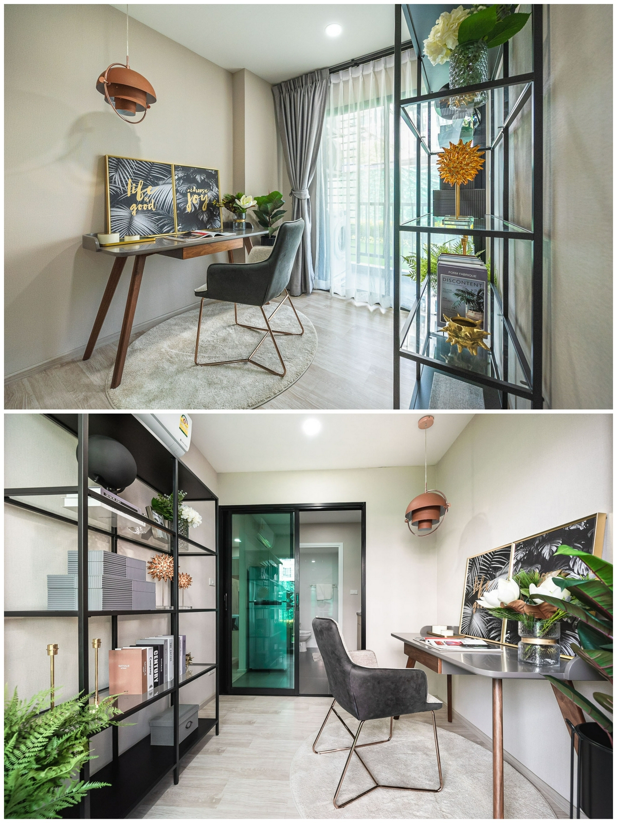 - ห้องทำงาน : เราสามารถเลือกวางโต๊ะทำงาน, เก้าอี้นั่ง, ชั้นวางของ, ตู้เก็บเอกสาร และอื่น ๆ ได้สารพัด อีกทั้งตัวห้องยังอยู่ติดกับระเบียง ทำให้มีแสงสว่างส่องถึง คอยสร้างบรรยากาศให้ห้องดูโล่งโปร่งอยู่ตลอดเวลา เหมาะสำหรับคนที่ต้องการห้องทำงานส่วนตัว ที่ต้องใช้สมาธิมากเป็นพิเศษ