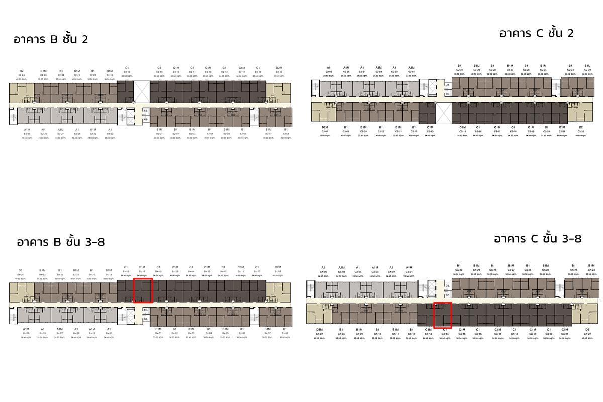 แปลนอาคาร B และ C ชั้น 2-8