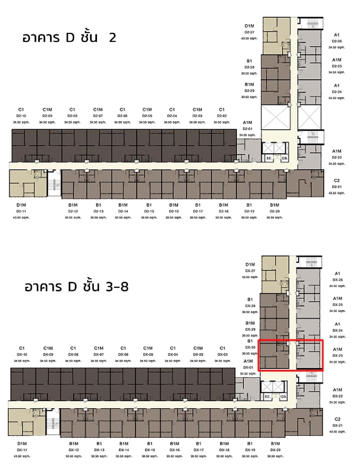 แปลนอาคาร D ชั้น 2-8