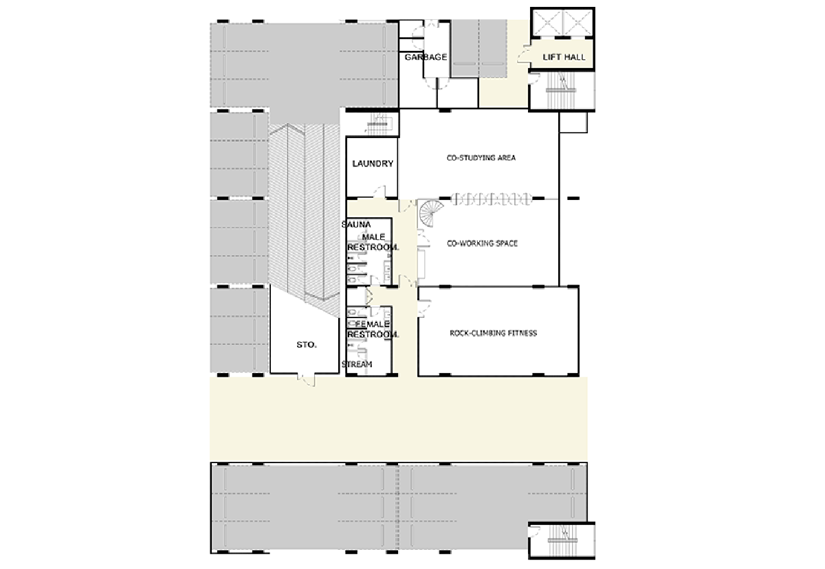 ชั้นล่างรองรับไลฟ์สไตล์คนทันสมัย Urban Living Community ด้วย Co-working Space , Co-studying Area และ Rock Climbing Fitness ที่พร้อมด้วยห้องซาวน่า , ห้องอบไอน้ำ , ห้องน้ำ และห้องเปลี่ยนชุดพร้อมล็อคเกอร์เก็บของส่วนตัว เพื่อความสะดวกเวลามาใช้บริการ