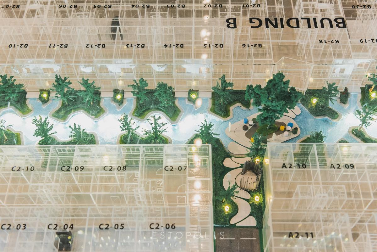 และหากใครอยากได้ห้องที่มองเห็นวิวสวนสวยๆ ล่ะก็ แนะนำให้เลือกห้องที่อยู่ด้านใน เพราะระเบียงจะหันเข้าหาสวนหย่อมของโครงการพอดี