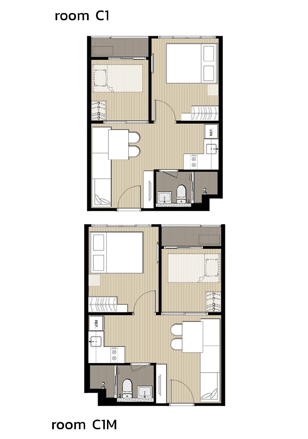 แปลนห้อง Type C1 : 1 Bedroom Plus