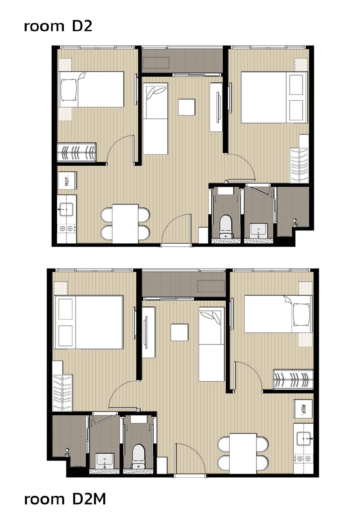 ห้อง 2 Bedrooms ขนาดพื้นที่ใช้สอย 43.50 - 46.50 ตารางเมตร