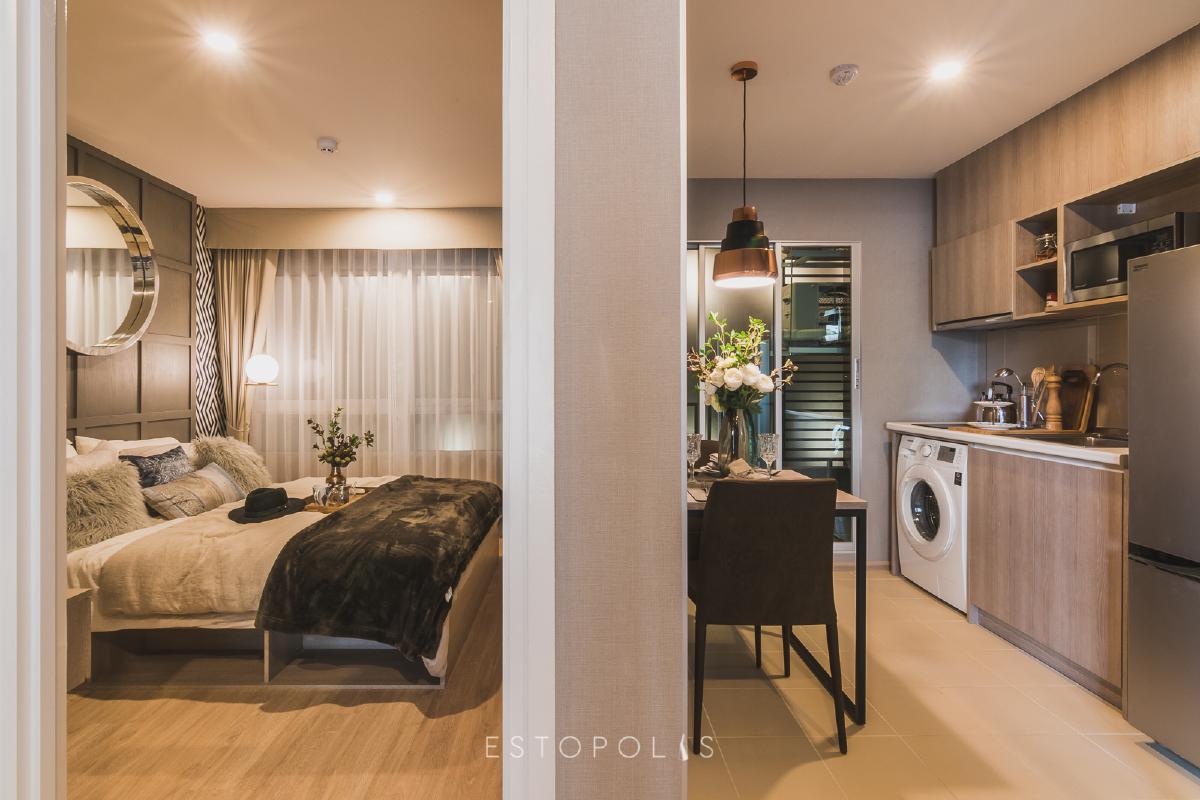 อย่าง ห้อง Studio ของ Elio Del Moss (เอลลิโอ เดล มอสส์ พหลโยธิน 34) ก็มีราคาเริ่มต้นที่ 1.69 ล้านบาท พร้อมเฟอร์นิเจอร์บิ้วท์อิน (Built in) ตกแต่งแบบ Fully Furnished เช่นเดียวกับ ห้อง 1 Bedroom