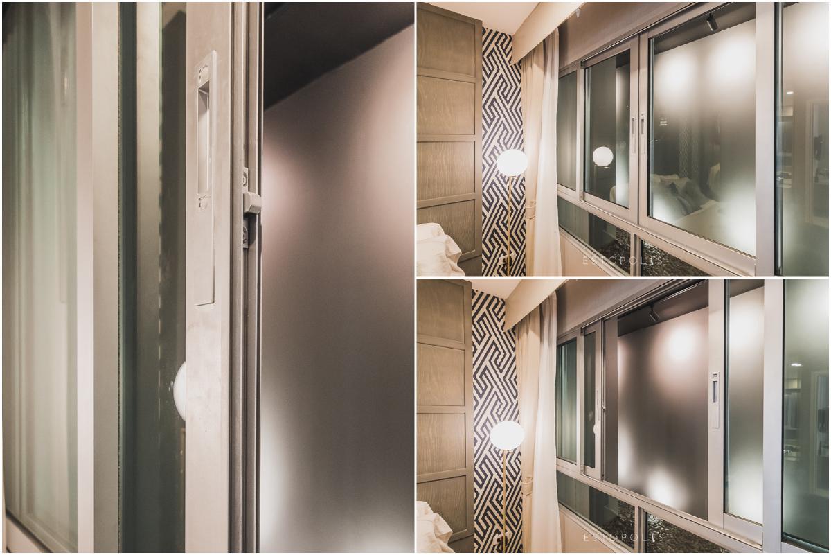 สำหรับแพลทติชั่นกั้นห้องจะเป็นบานเลื่อนกระจกแบบ 3 ตอน ทำให้เปิดออกได้กว้าง เดินผ่านไปมาสะดวก