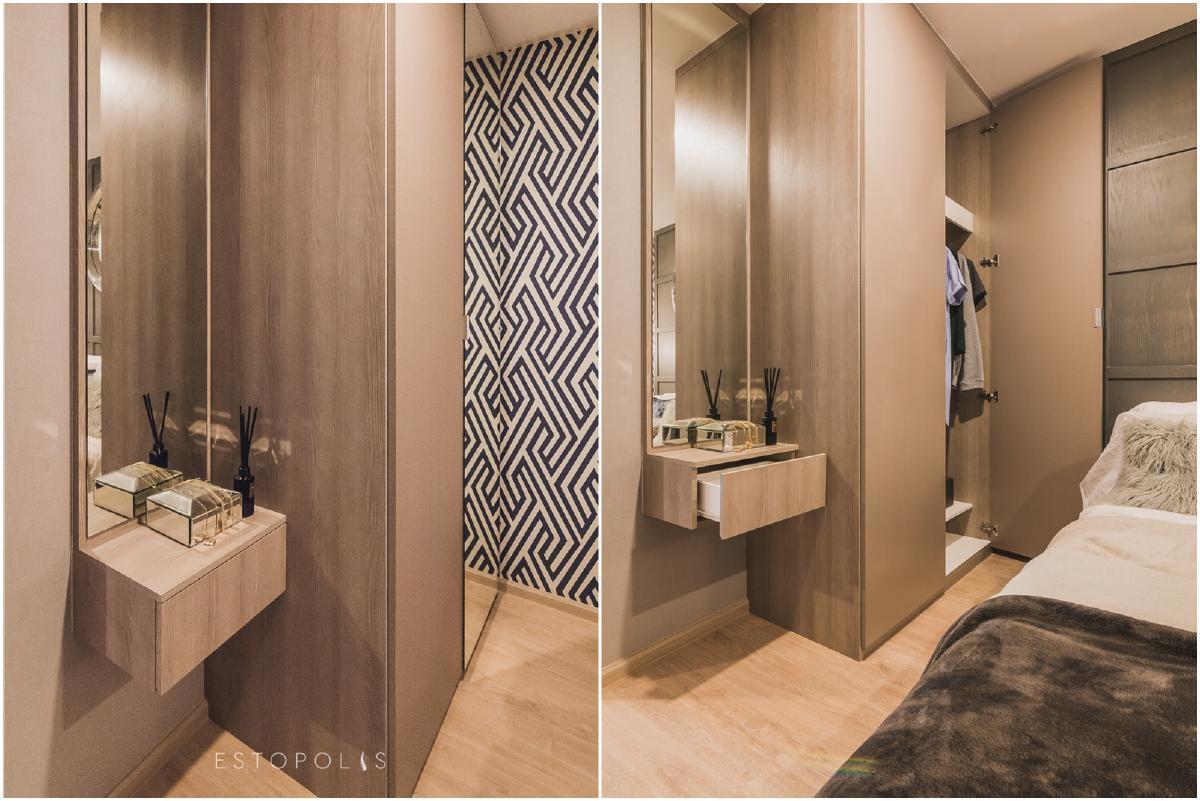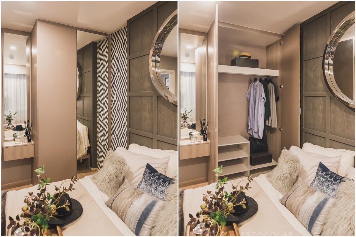 Elio Del Moss (เอลลิโอ เดล มอสส์ พหลโยธิน 34) Built in ตู้เสื้อผ้าและโต๊ะเครื่องแป้งติดผนัง และด้วยความสูงถึงเพดาน 2.4 เมตร ทำให้ได้พื้นที่ใช้สอยที่คุ้มค่ากว่า