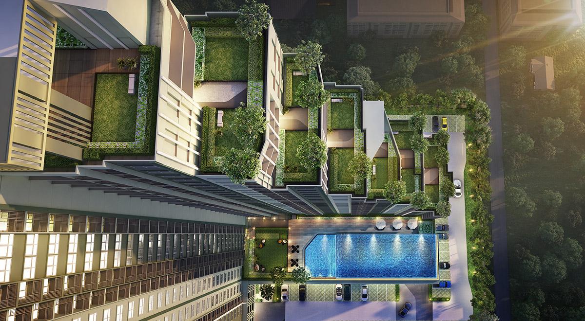 เพิ่มพื้นที่สีเขียวแบบ Step Terrace Garden สวนสวยส่วนกลาง มากกว่า 7 ชั้น