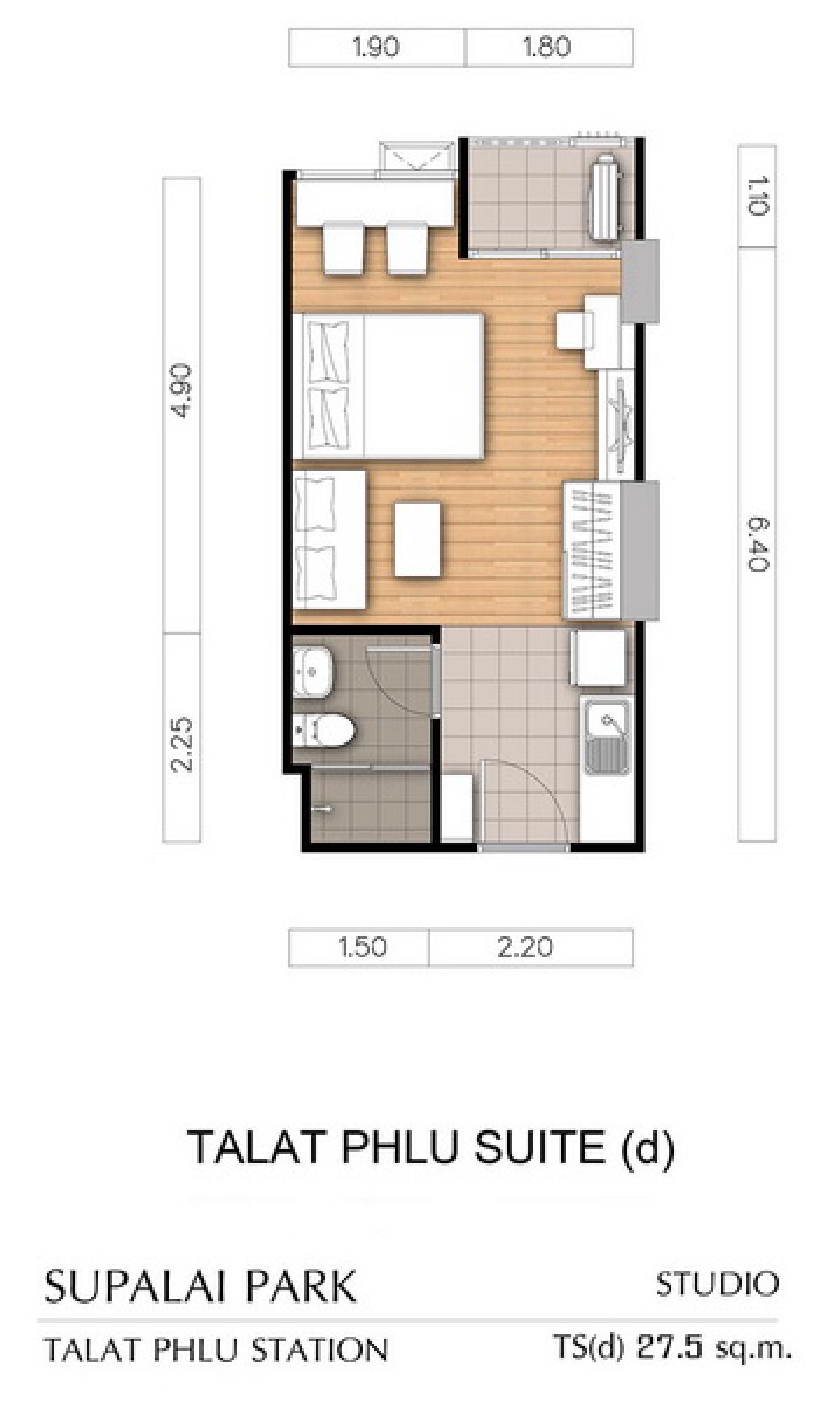 ห้องแบบ Studio ขนาด 27.5 ตร.ม