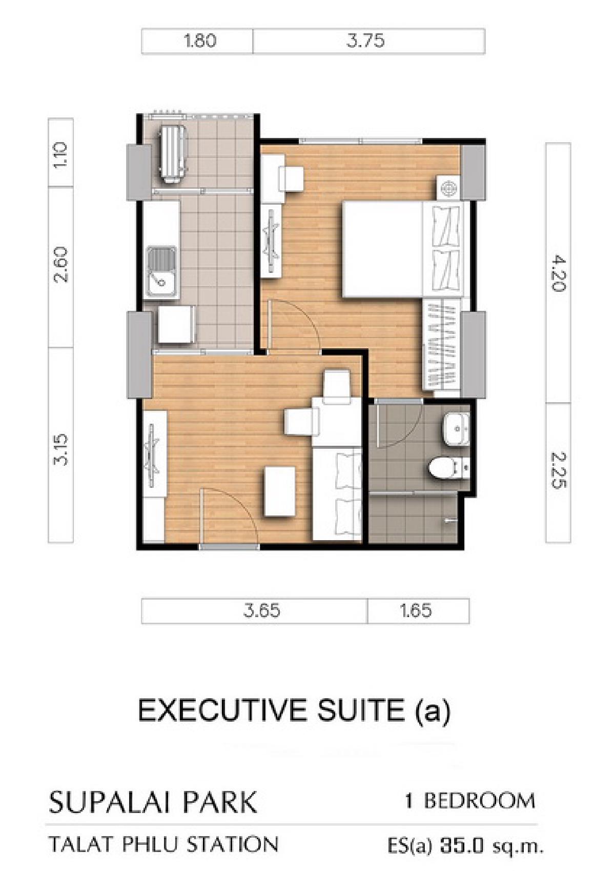 ห้องแบบ 1 ห้องนอน ขนาด 35 ตร.ม.