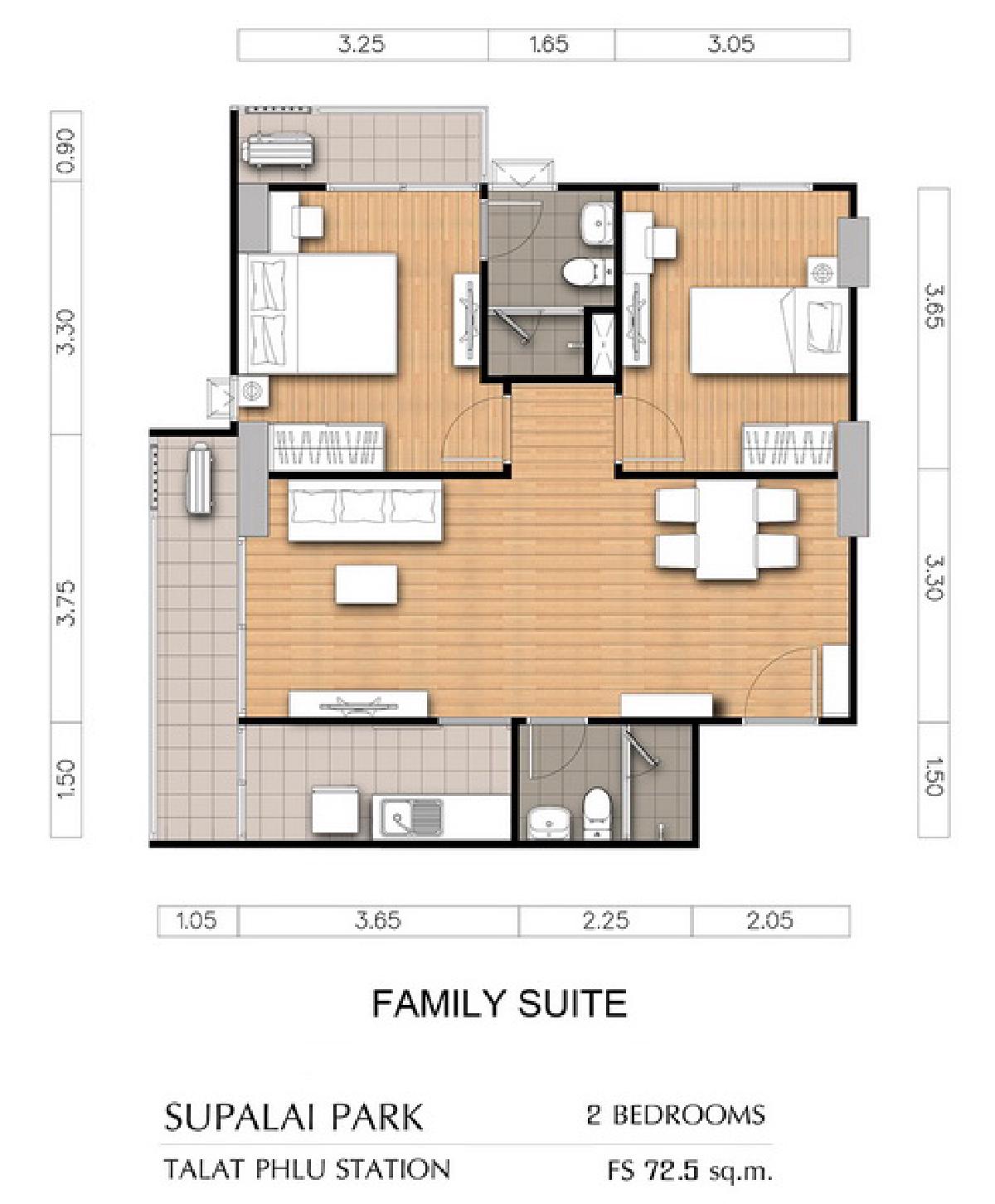 ห้องตัวอย่างภายในคอนโด ศุภาลัย ปาร์ค สถานีตลาดพลู (Supalai Park Talat Phlu Station)