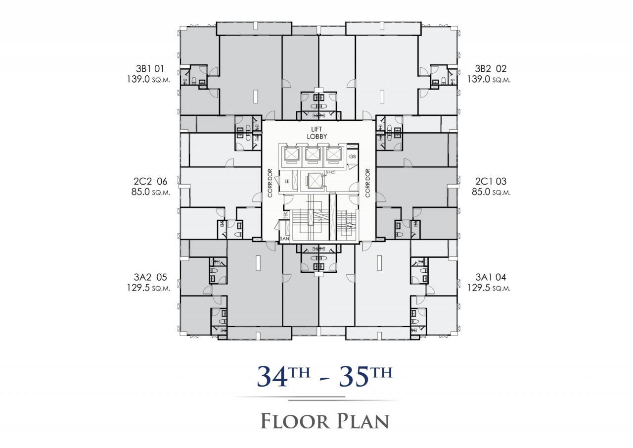 ส่วนสองชั้นบนสุดอย่าง ‘ชั้น 34 และ 35’ จะมีห้องพักอาศัยต่อชั้นอยู่ที่ 6 ยูนิตเท่านั้น โดยจะแบ่งเป็น…