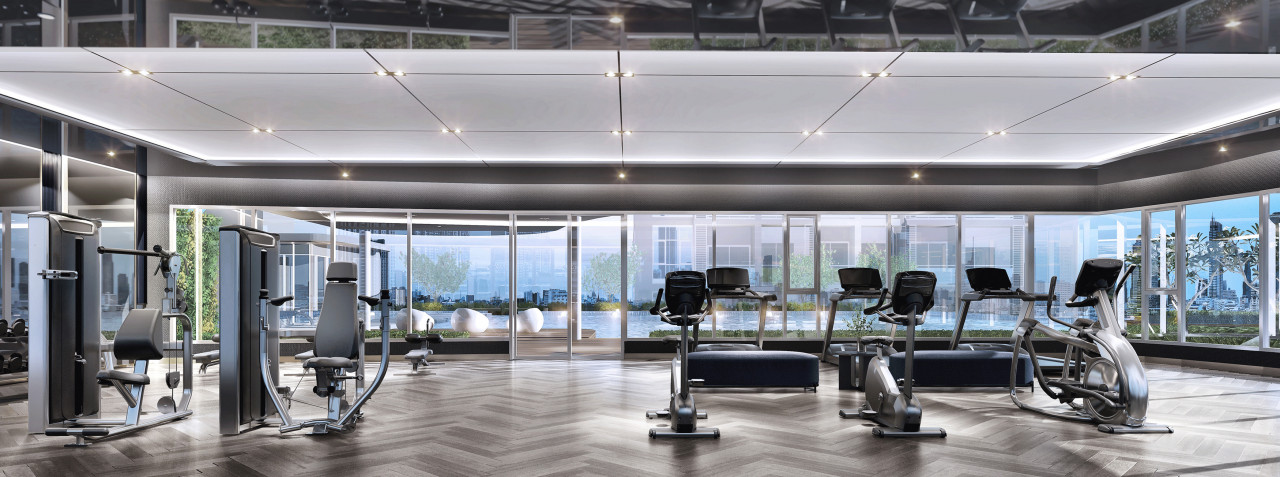 สำหรับพื้นที่ด้านในจะเป็นส่วนของห้อง Fitness ขนาดใหญ่ ที่ให้วิวแบบรอบทิศทาง รองรับเครื่องออกกำลังกายแบบมาตรฐานทุกประเภท ทั้งลู่วิ่งไฟฟ้า, เครื่องเพิ่มกล้ามเนื้อ, เครื่องเดินวงรี และอีกหลากหลายเครื่องเล่น โดยใกล้ ๆ กันจะมี Sauna อยู่ในส่วนของห้องน้ำแยกชาย-หญิง สามารถเข้ามาใช้บริการได้ทุกเวลาที่ต้องการ