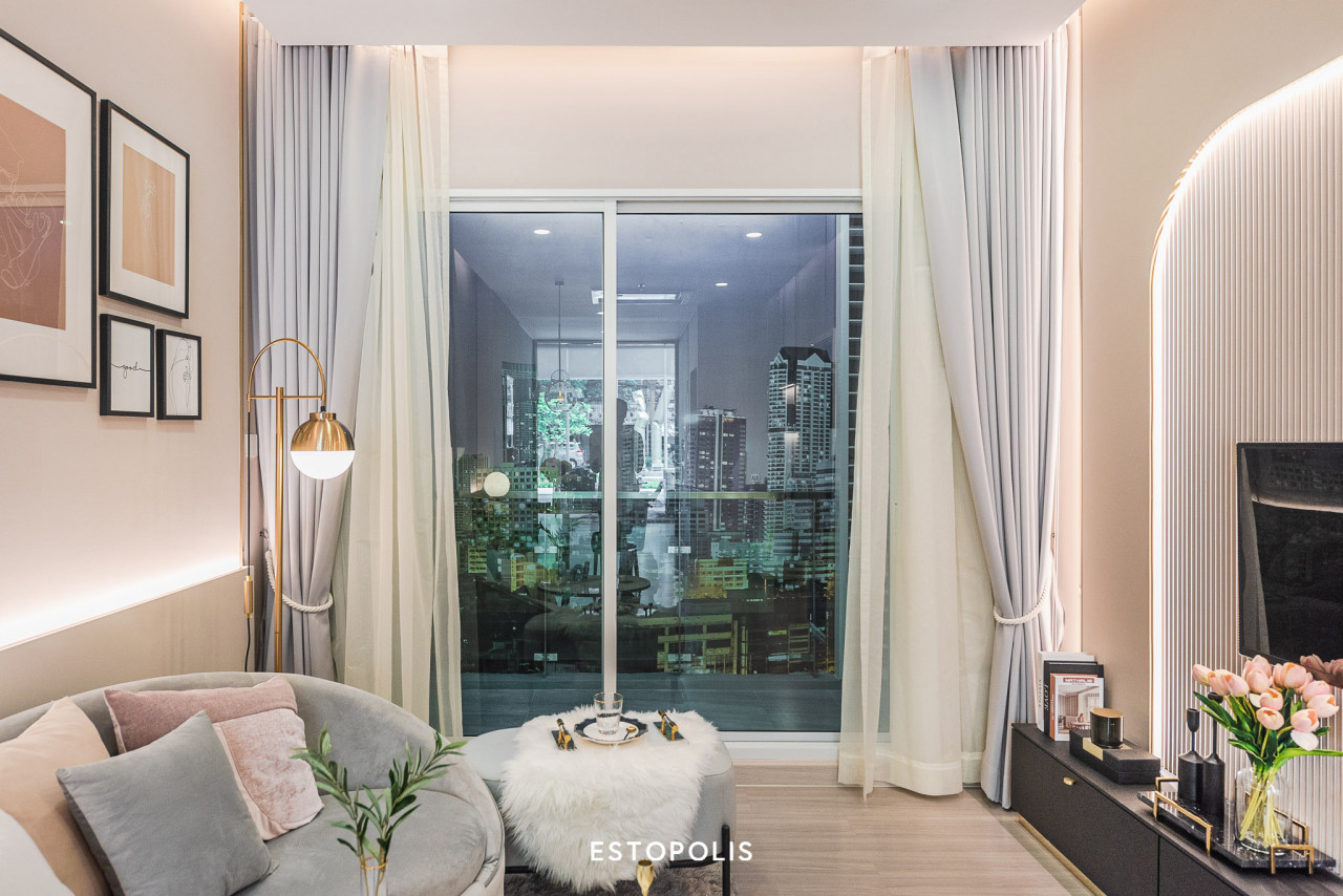 - แถมเรายังสามารถรับชมวิวเมืองสวย ๆ ได้ตลอดเวลา เนื่องจาก Living room จะอยู่ติดกับระเบียงนั่นเอง