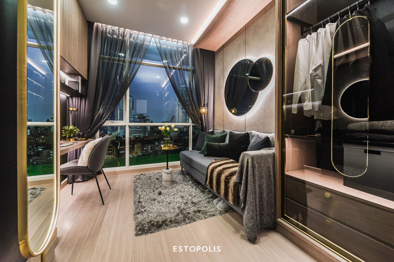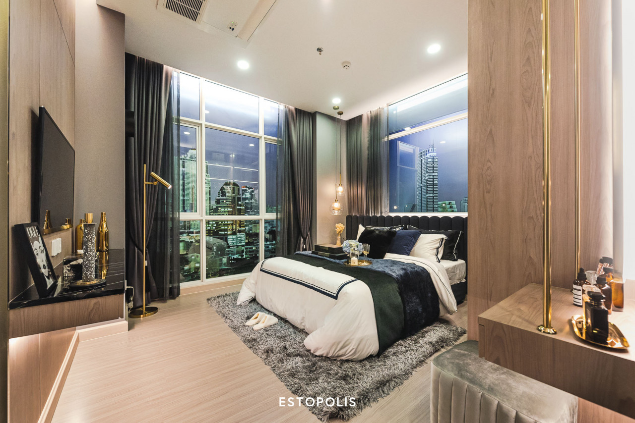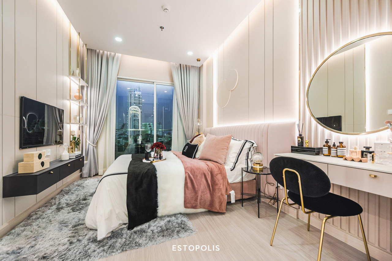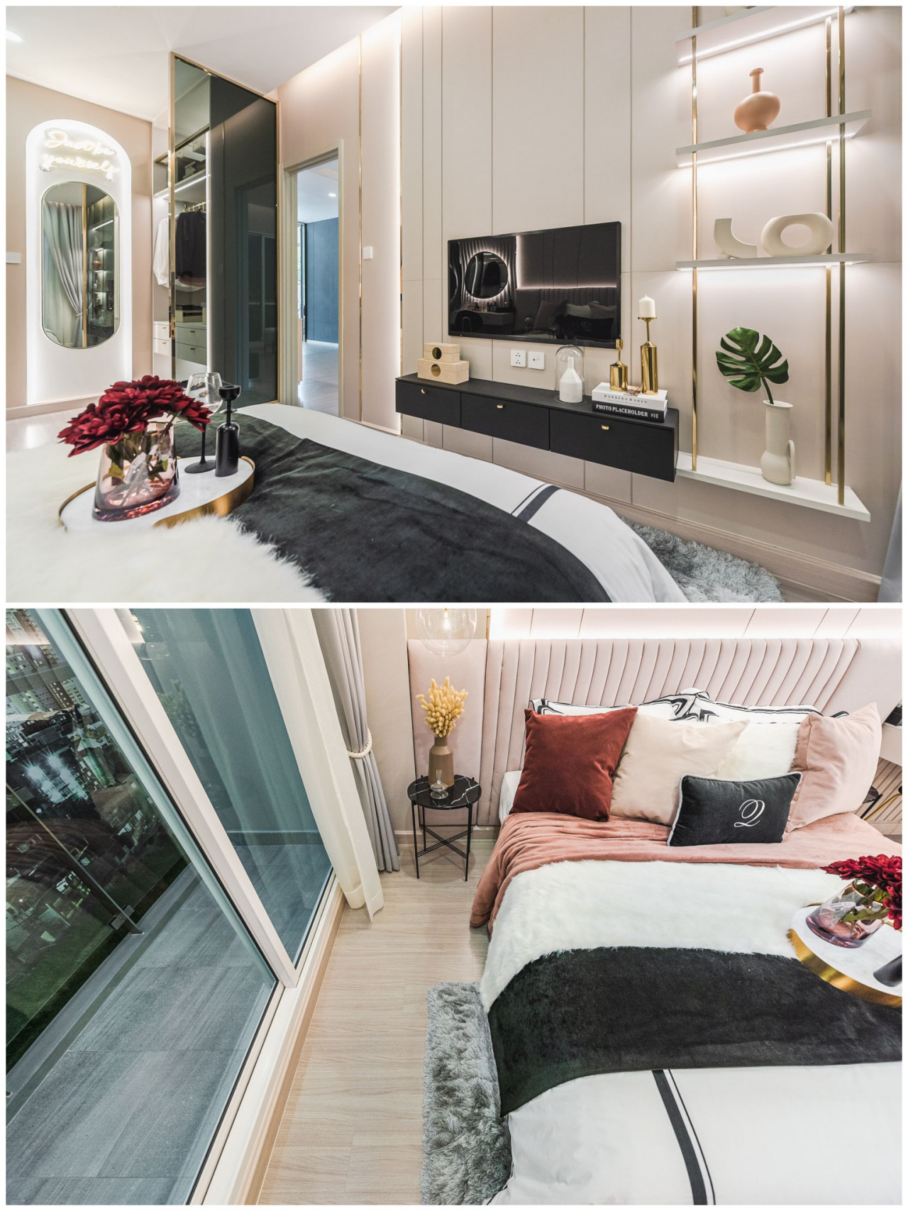 - พื้นที่ห้องนอนขนาดใหญ่ สามารถวางเตียงขนาด 6 ฟุตได้แบบเหลือเฟือ ทำให้คุณสามารถเพิ่มโต๊ะเครื่องแป้ง หรือมุมทำงานเข้าไปด้วยได้