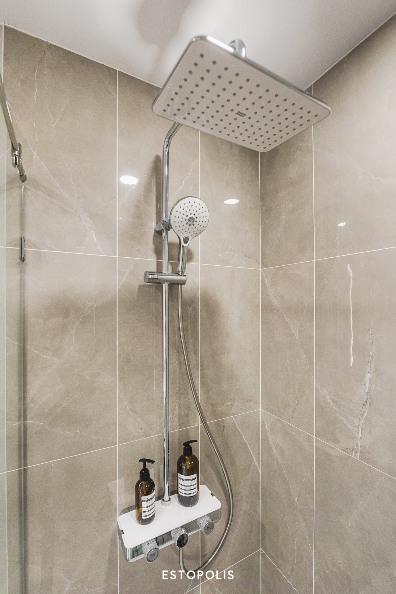 ด้านใน Shower Box มีพื้นที่ขนาดใหญ่ ทางโครงการจะให้มาทั้ง Rain shower และ Hand shower พร้อมติดตั้งระบบทำน้ำอุ่นมาให้ในตัว ทำให้ห้องน้ำมีความสวยงาม ทั้งยังดูแลทำความสะอาดง่ายอีกด้วย