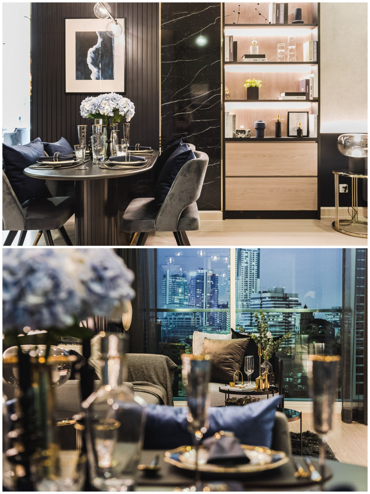 - มุมนั่งทานอาหาร : หากใครอาศัยอยู่คนเดียว เราอาจปรับส่วนนี้เป็นมุมที่สามารถใช้ประโยชน์อื่น ๆ ได้แทน แต่ถ้าใครอยากจัดมุมทานอาหารสำหรับ 2-4 ที่นั่ง ไว้คอยรับรองแขกก็ทำได้สบาย ๆ