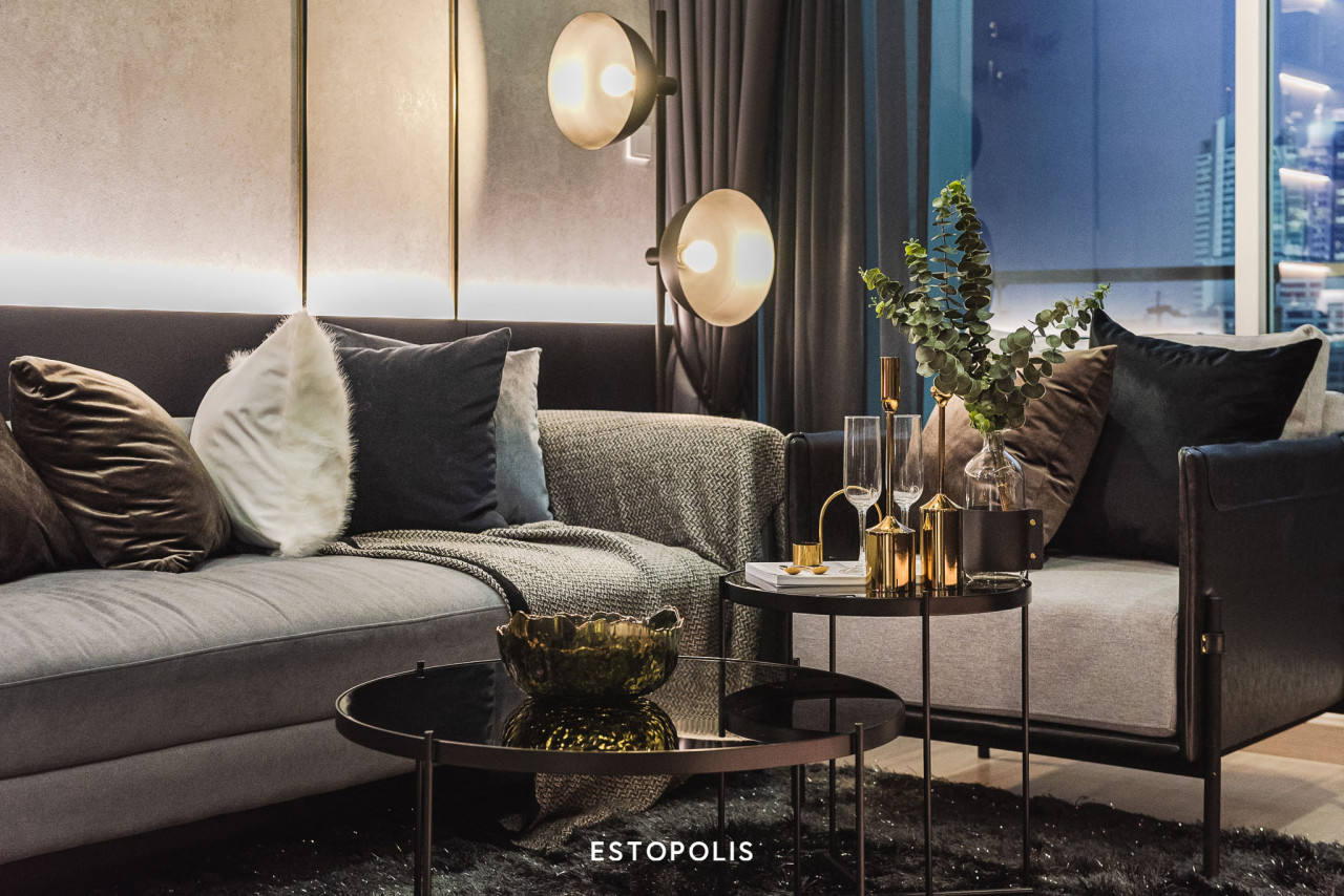 นอกจากนี้ ยังสามารถวางโซฟาขนาดใหญ่ได้ทุกแบบ ทุกดีไซน์ ทั้งยังเหลือพื้นที่ให้วางโต๊ะกลางได้แบบเหลือเฟือ พร้อมให้ระยะรับชมที่พอเหมาะกับสายตาของเราอีกด้วย
