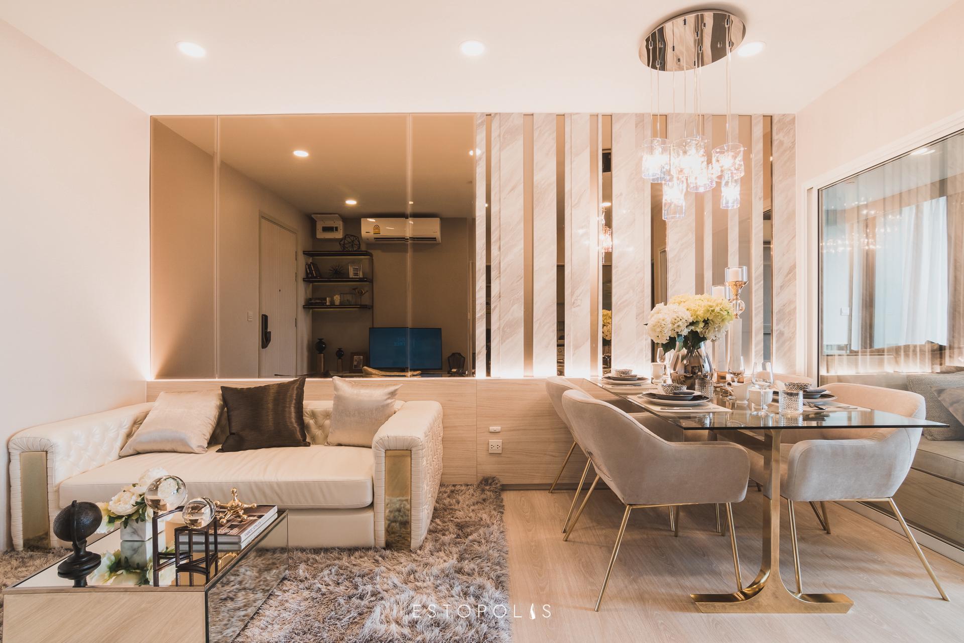 แค่เปิดประตูเข้าไป เราก็จะพบกับบรรยากาศที่ถูกตกแต่งไว้อย่างดีดู Luxury และมีพื้นที่ค่อนข้างกว้างขวางตอบโจทย์การอยู่อาศัยทุกรูปแบบทุกสไตล์ ไม่ว่าจะอยู่เป็นคู่ อยู่กันเป็นครอบครัว หรือใช้ชีวิตคนเดียวก็สามารถออกแบบความสุขเองได้