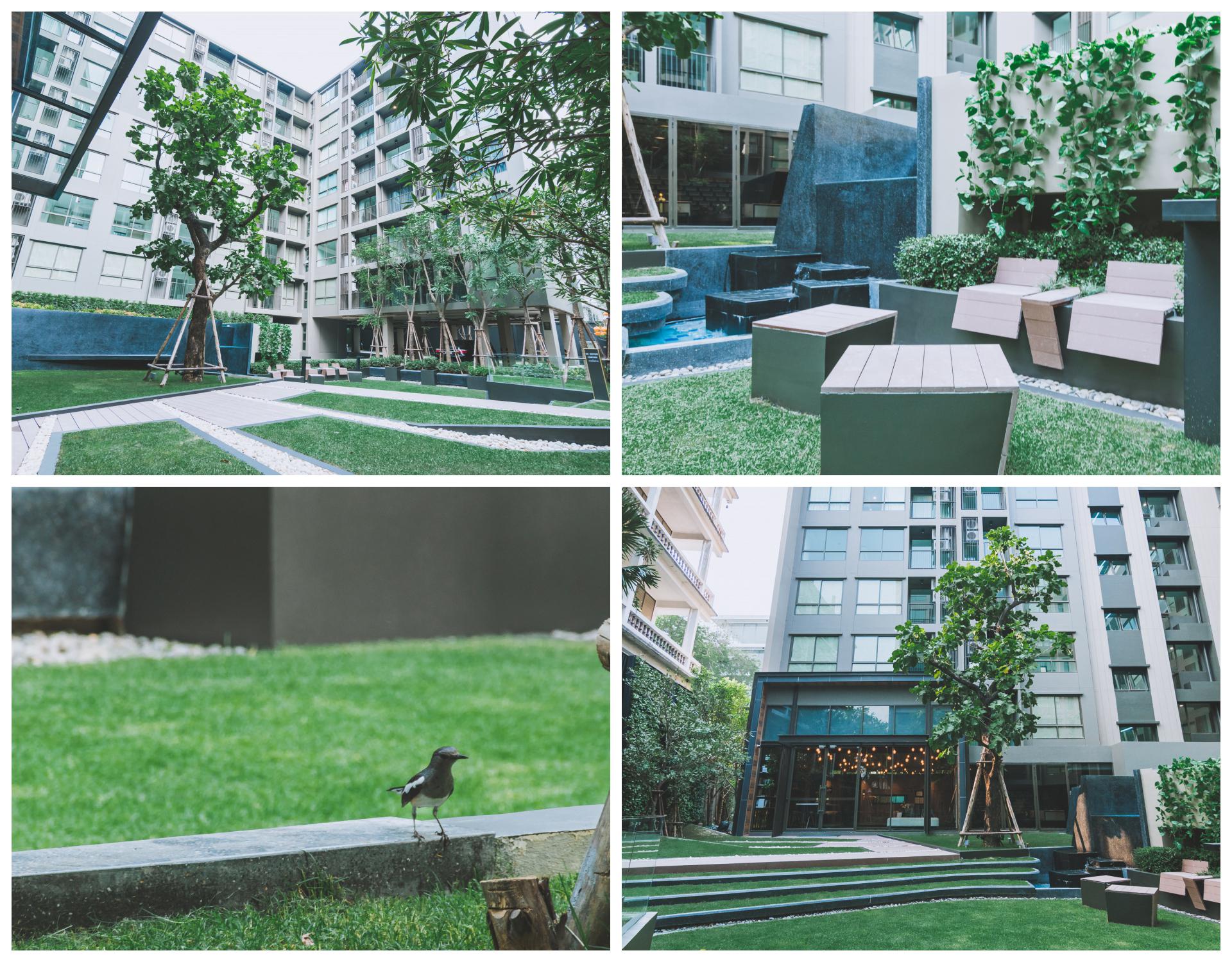 The Boutique Courtyard เป็นสวนชั้นล่างที่ตั้งอยู่กลางโครงการ สามารถมานั่งรับลมเย็นได้ในช่วงเช้าและเย็น หรือจะมองทอดลงมาจากตัวอาคาร ก็ช่วยผ่อนคลายสายตาได้เป็นอย่างดี