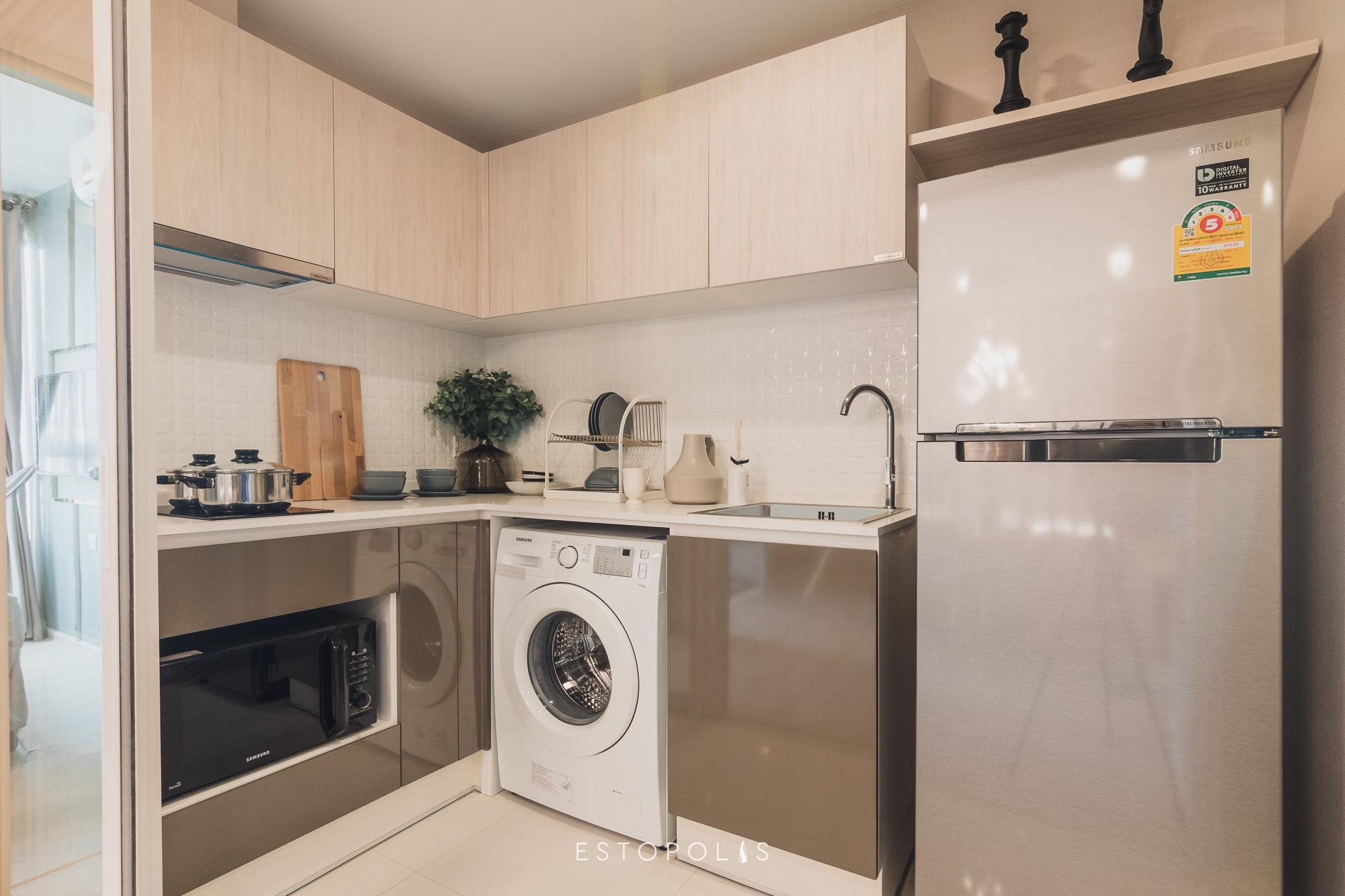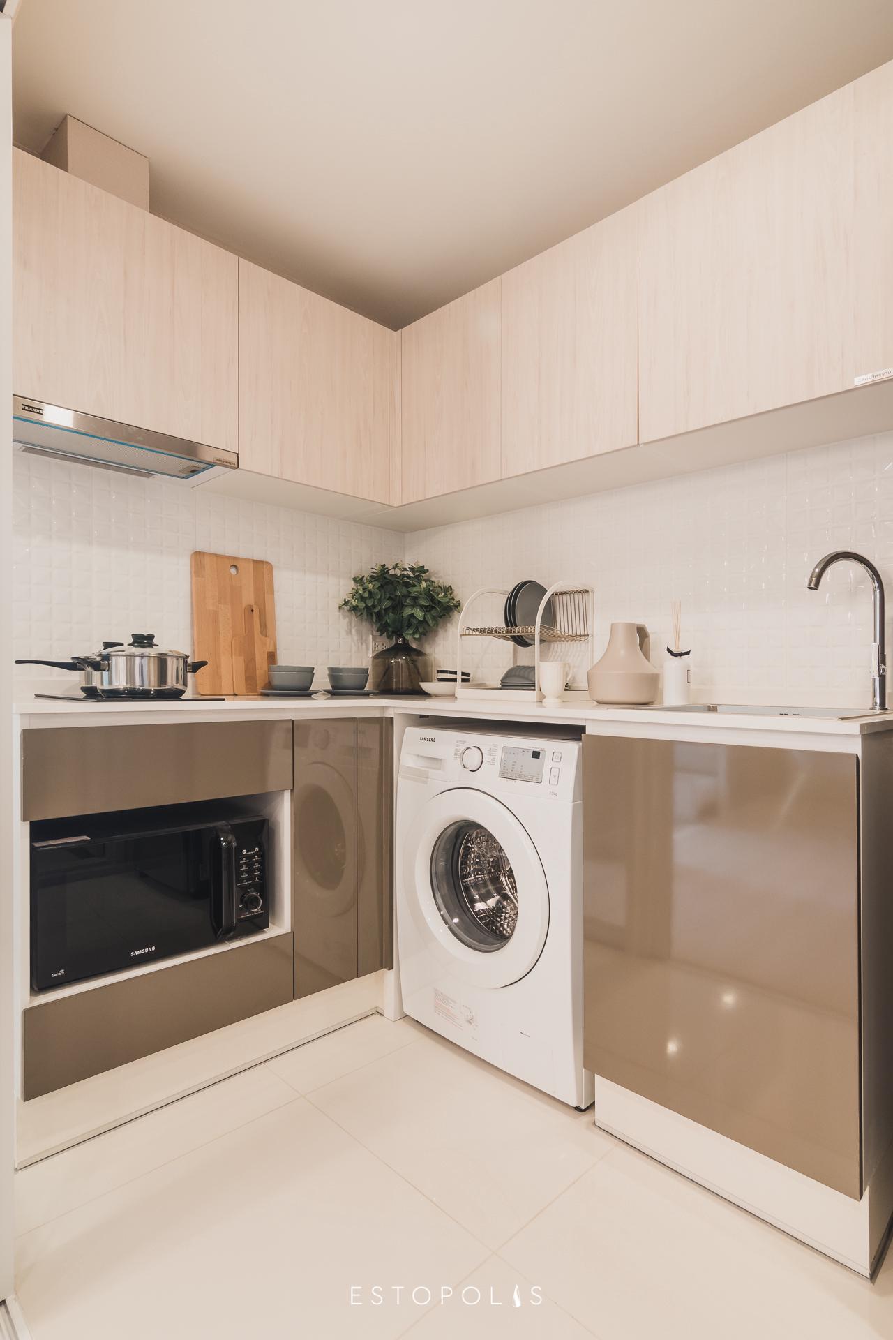 เผื่อเวลาเพียงเล็กน้อยมาทำอาหารด้วยกัน ก็ดูเป็นกิจกรรมที่สร้างความสุขได้ไม่ยาก ในห้องขนาด 40.80 ตร.ม. เพราะครัวที่โครงการ The Tree สุขุมวิท 64 ให้มานั้น เหมาะสำหรับเหล่าพ่อครัว-แม่บ้านประจำคอนโด มีการบิลท์อิน (Built in) ชุดครัวชุดใหญ่สามารถยืนทำไปพร้อมๆ กันได้