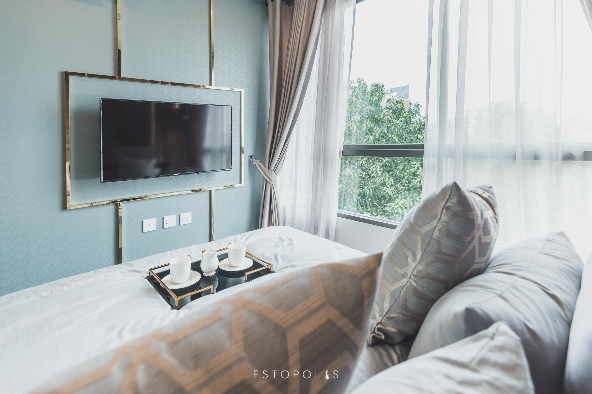 ส่วนปลายเตียงเดินระบบเคเบิลทีวี (Cable) ให้พร้อมใช้งานทันที เหมาะสำหรับคนที่ชอบใช้ชีวิตอยู่ในห้องนอนเป็นประจำ สามารถแขวนโทรทัศน์จอกว้างได้หลายนิ้ว
