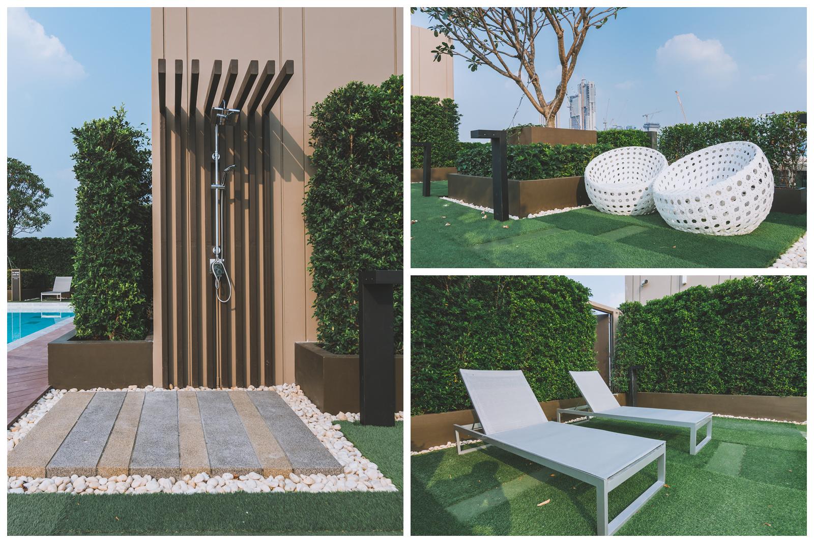 ส่วนใครต้องการความสดชื่น สามารถเดินขึ้นไปว่ายน้ำเล่นได้ตรง The Boutique Leisure Pool สระว่ายน้ำกลางแจ้ง ให้เราชมวิวรอบโครงการได้แบบ 270 องศา