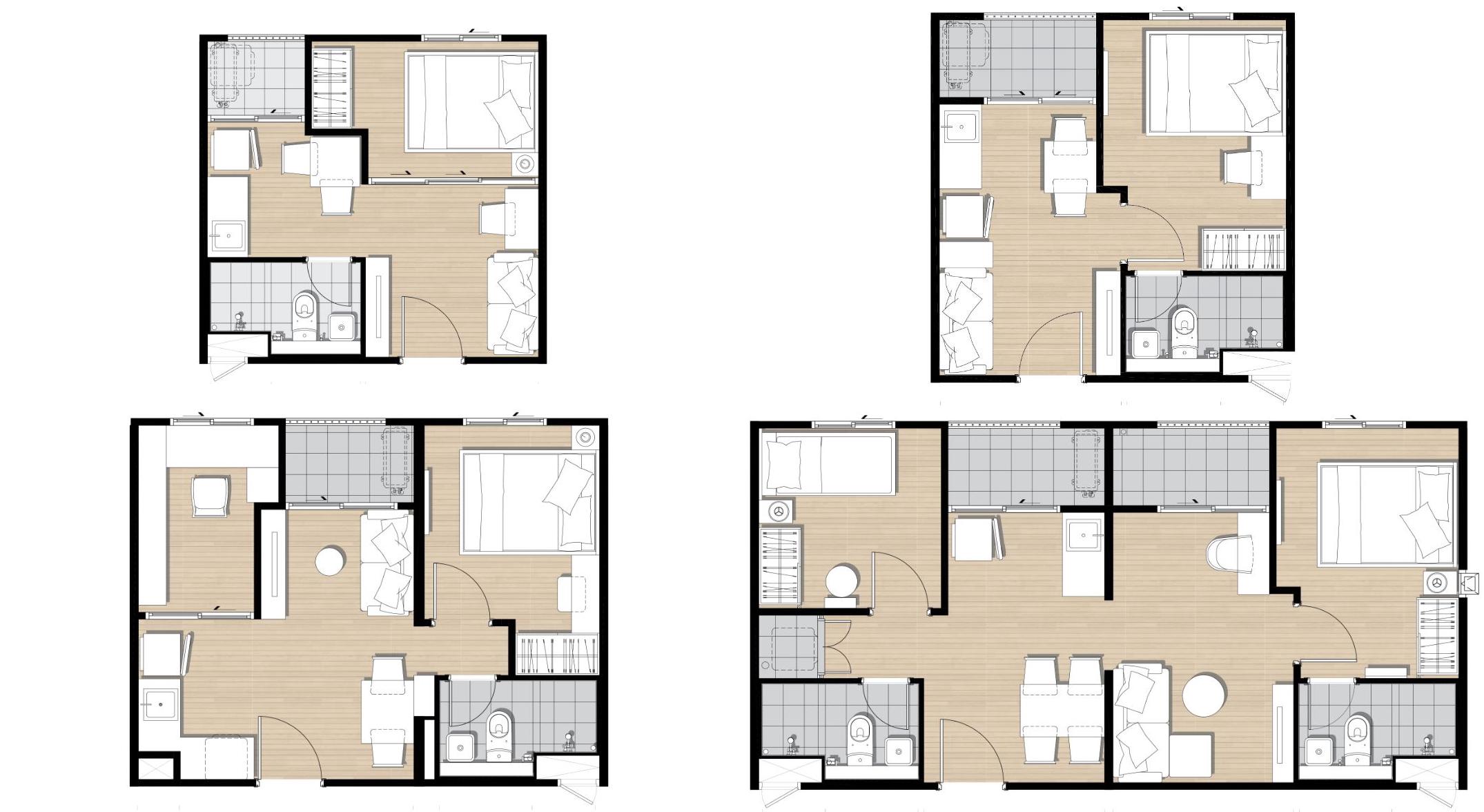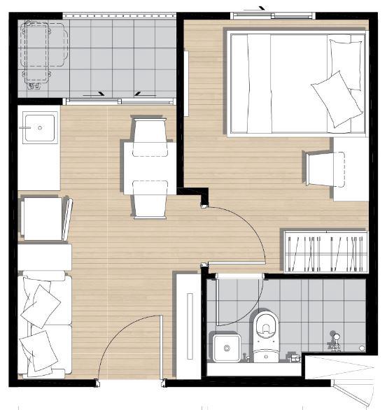 - 1 ห้องนอน ขนาดพื้นที่ใช้สอย 32.50 - 35.50 ตารางเมตร