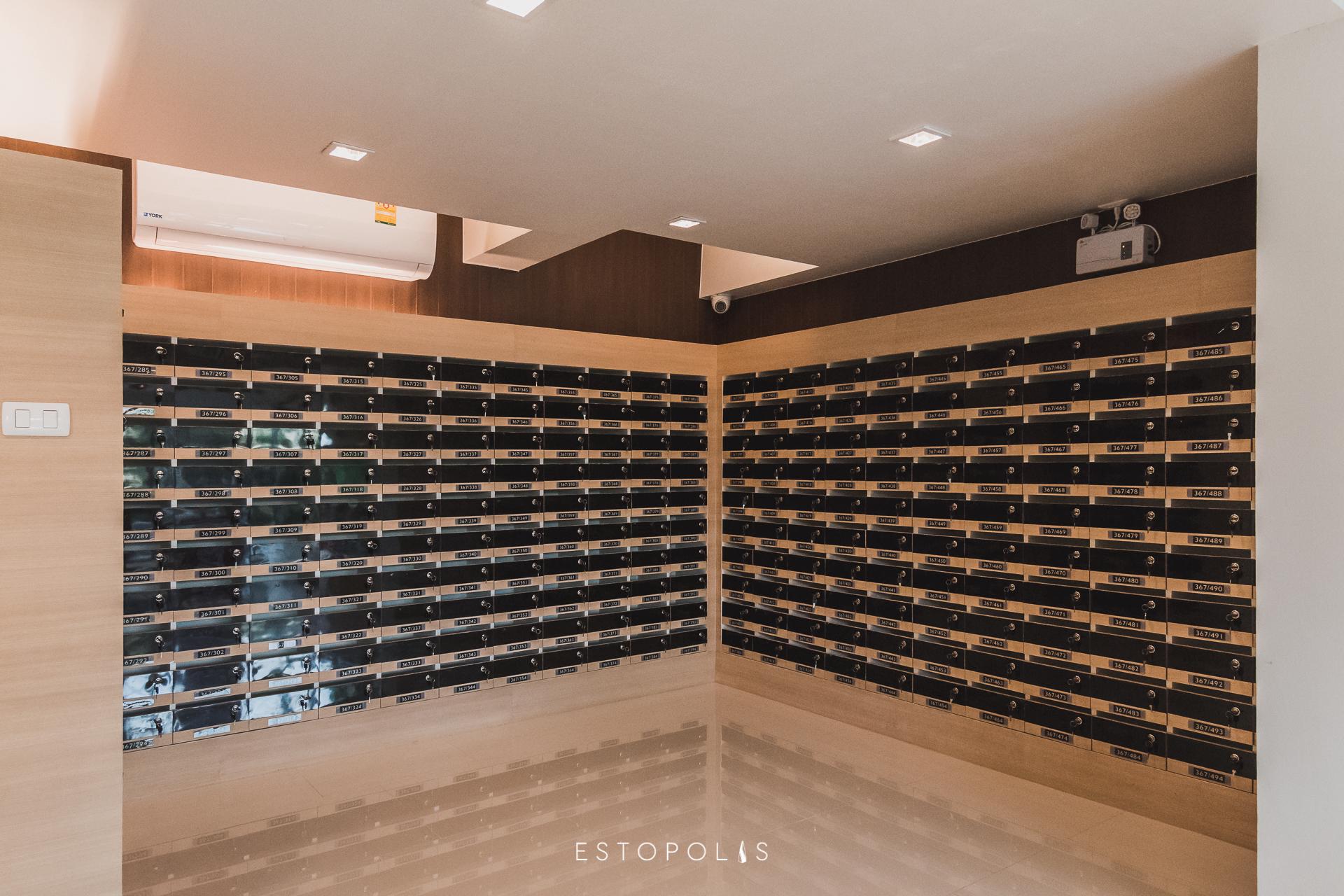 ขยับไปอีกนิดเป็น ห้องจดหมาย (Mail Box) สำหรับผู้พักอาศัย สามารถตรวจเช็ดได้สะดวก เพราะตั้งอยู่ใกล้ลิฟท์โดยสาร