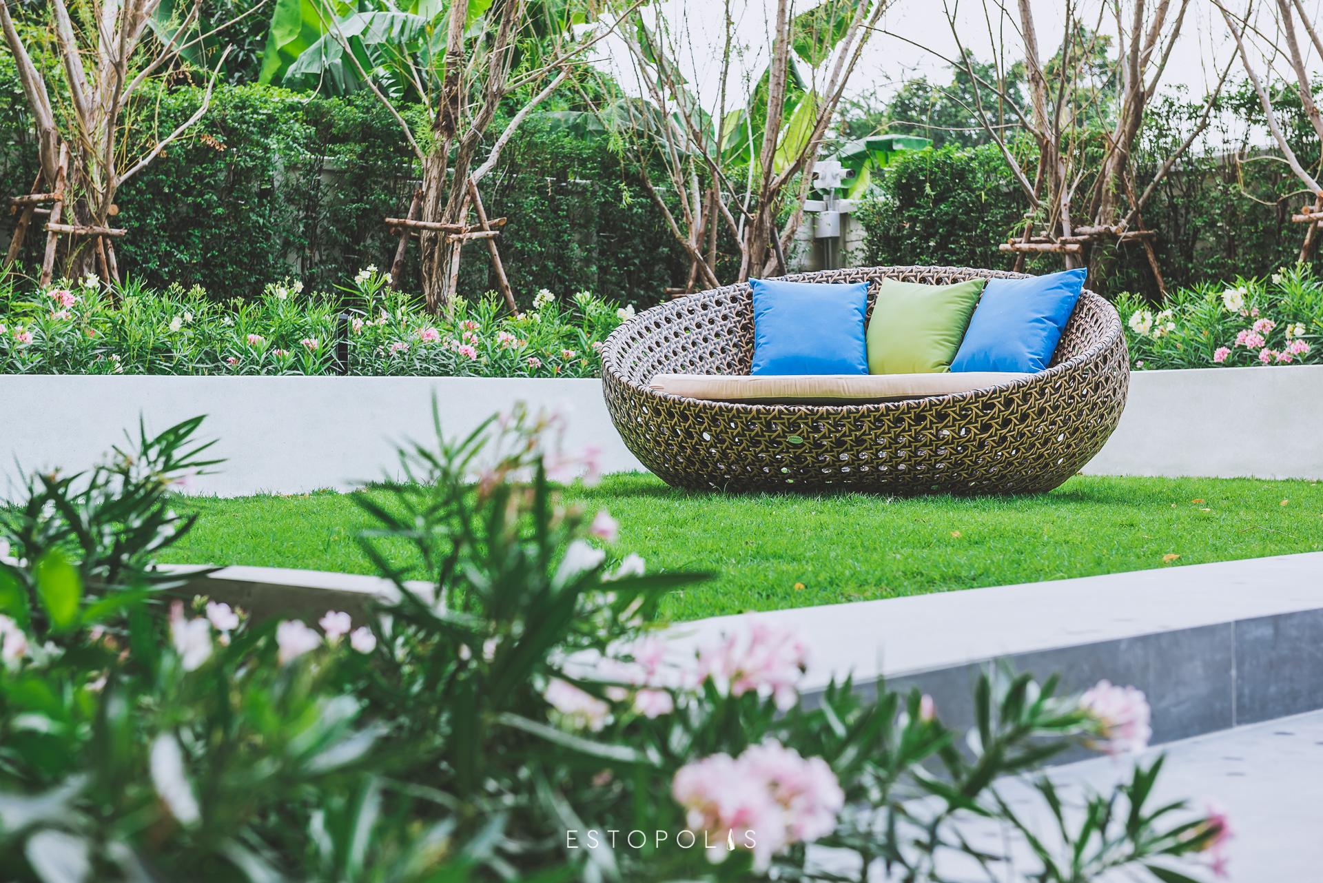 หากเดินต่อไปสักนิดจะเห็น "สวนหย่อมขนาดย่อม" อยู่หลังสุด รายล้อมด้วยไม้ดอกและต้นไม้สูงคอยให้ร่มเงา ระหว่างทางประดับประดาไปด้วยสีสันของดอกไม้และสีเขียวของใบหญ้า ให้บรรยากาศผ่อนคลาย