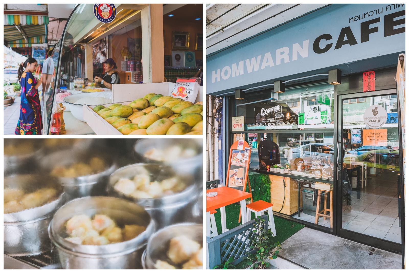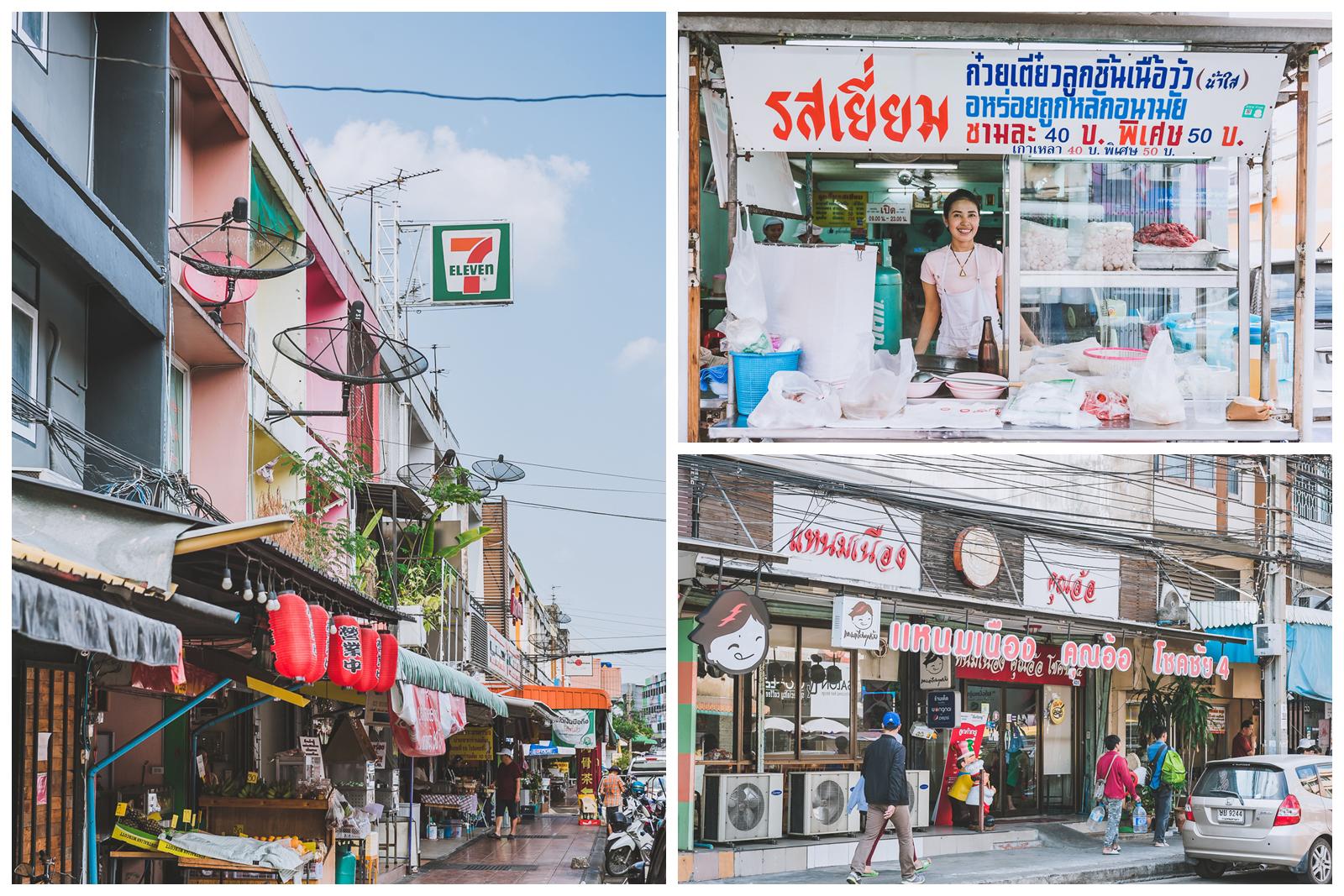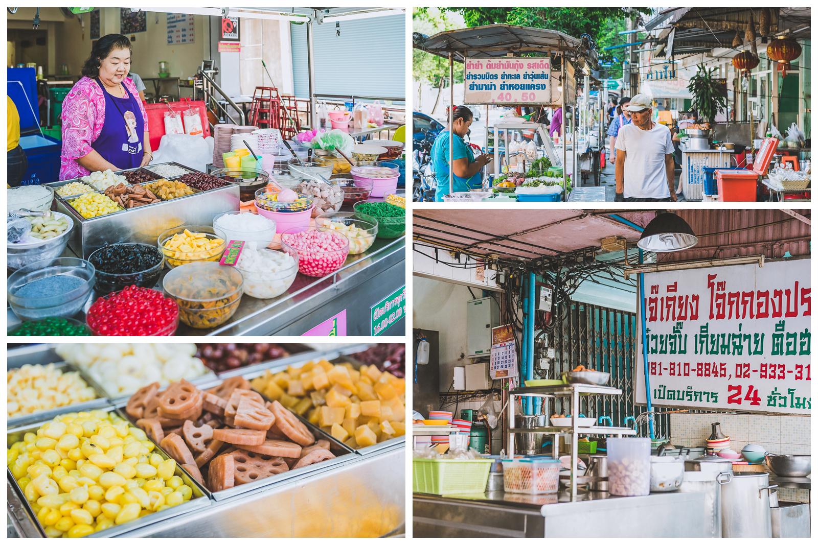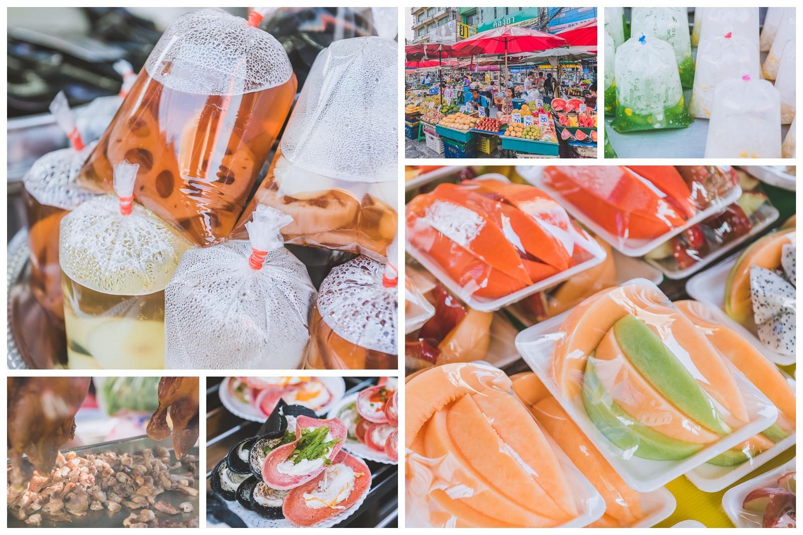 เริ่มที่ตลาดโชคชัย 4 ในช่วงเย็น ซึ่งจะมีร้านอาหารวางแผงขายกันคึกคักกว่าช่วงเช้า ทั้งผลไม้สด ของทานเล่น และอาหารจานหลัก
