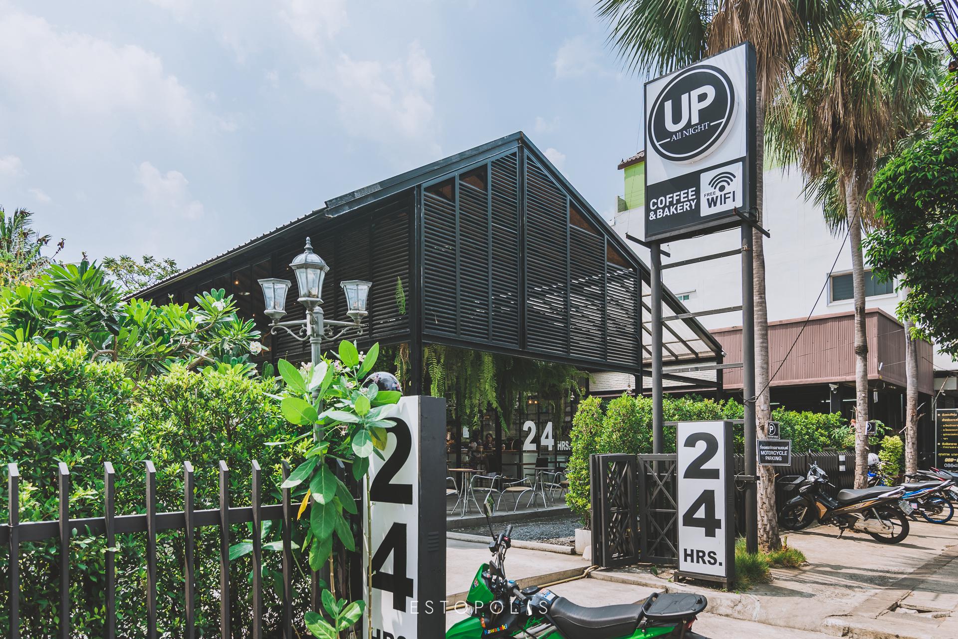 Up All Night Cafe เป็นคาเฟ่เปิด 24 ชั่วโมง ที่มี Wifi และ ปลั๊กไฟให้ใช้งานกันสะดวก พร้อมโต๊ะและที่นั่งแบบ indoor-outdoor ถึง 2 ชั้น เพื่อรองรับปริมาณลูกค้าที่แวะเวียนเข้ามาตลอดวัน