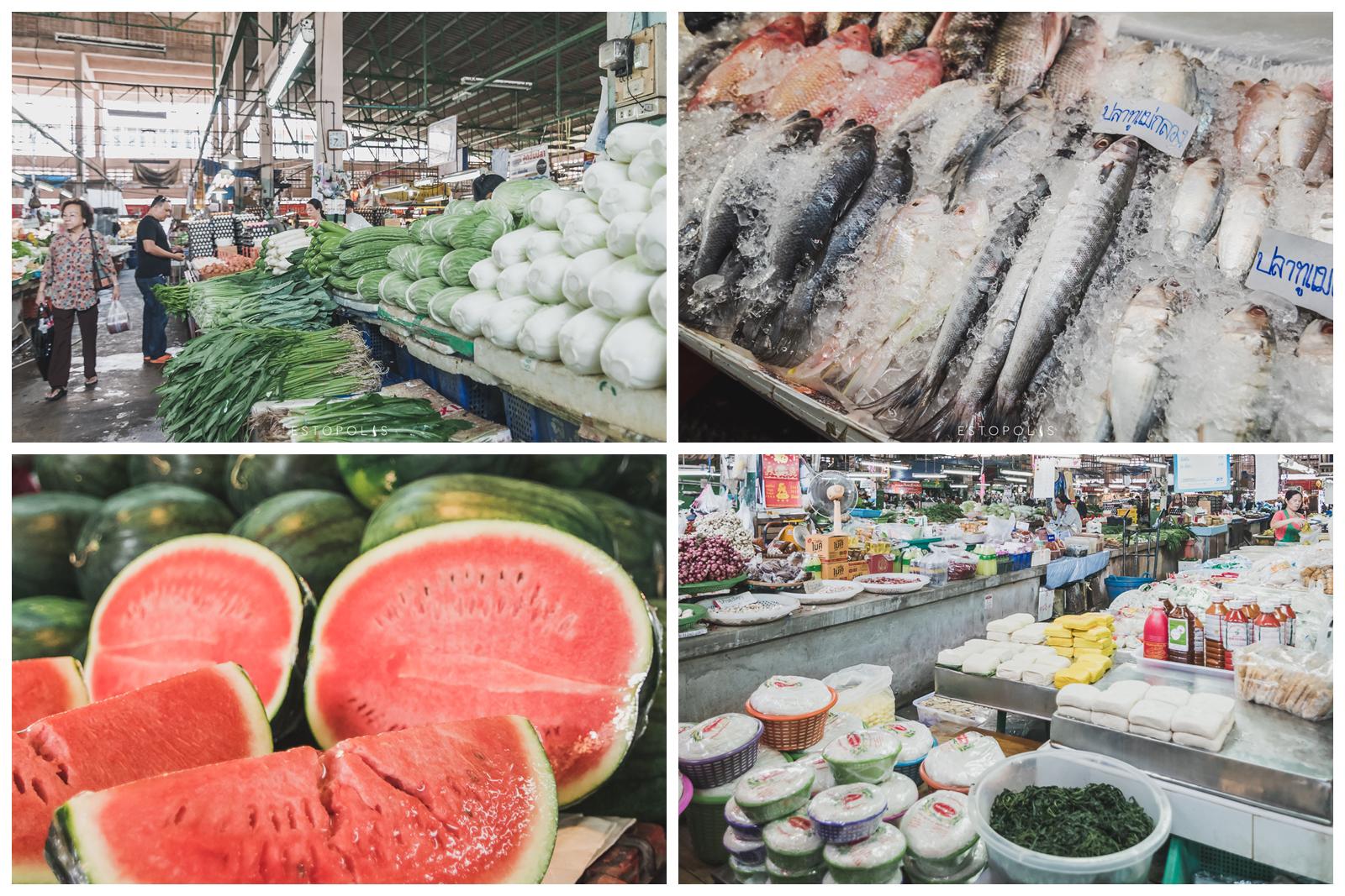 ภายในตลาดมีแผงร้านของกินของใช้เปิดขายตั้งแต่เช้า ถัดไปอีกหน่อยก็เป็นร้านอาหารแนวสตรีทฟู้ดส์ (Street Food) ตั้งอยู่ประปราย เช่น ข้าวมันไก่ , ขนมจีน , ก๋วยเตี๋ยว หรือจะเลือกทานมื้อเช้าเบาๆ ก็มีพวกขนมจีบ ซาลาเปาขายด้วยเช่นกัน