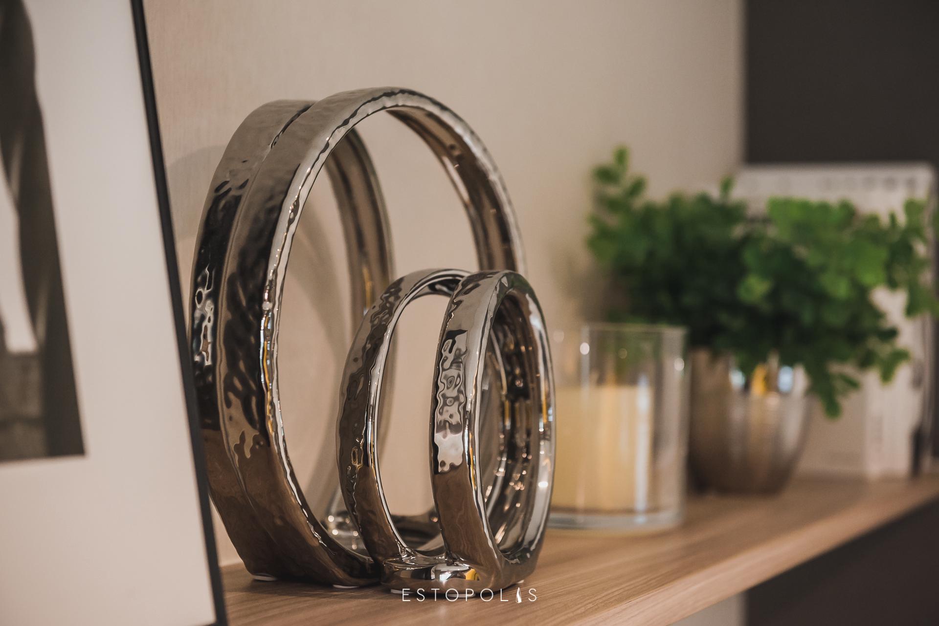 หรือจะเพิ่มพื้นที่วางของด้วยการบิลท์อินชั้นลอยติดผนังไว้เหนือทีวี แต่หากใครกังวลเรื่องฝุ่นผง อาจใช้เป็นตู้กระจกบิลท์อิน (Built in) แทนก็ดูสวยงามไม่แพ้กัน