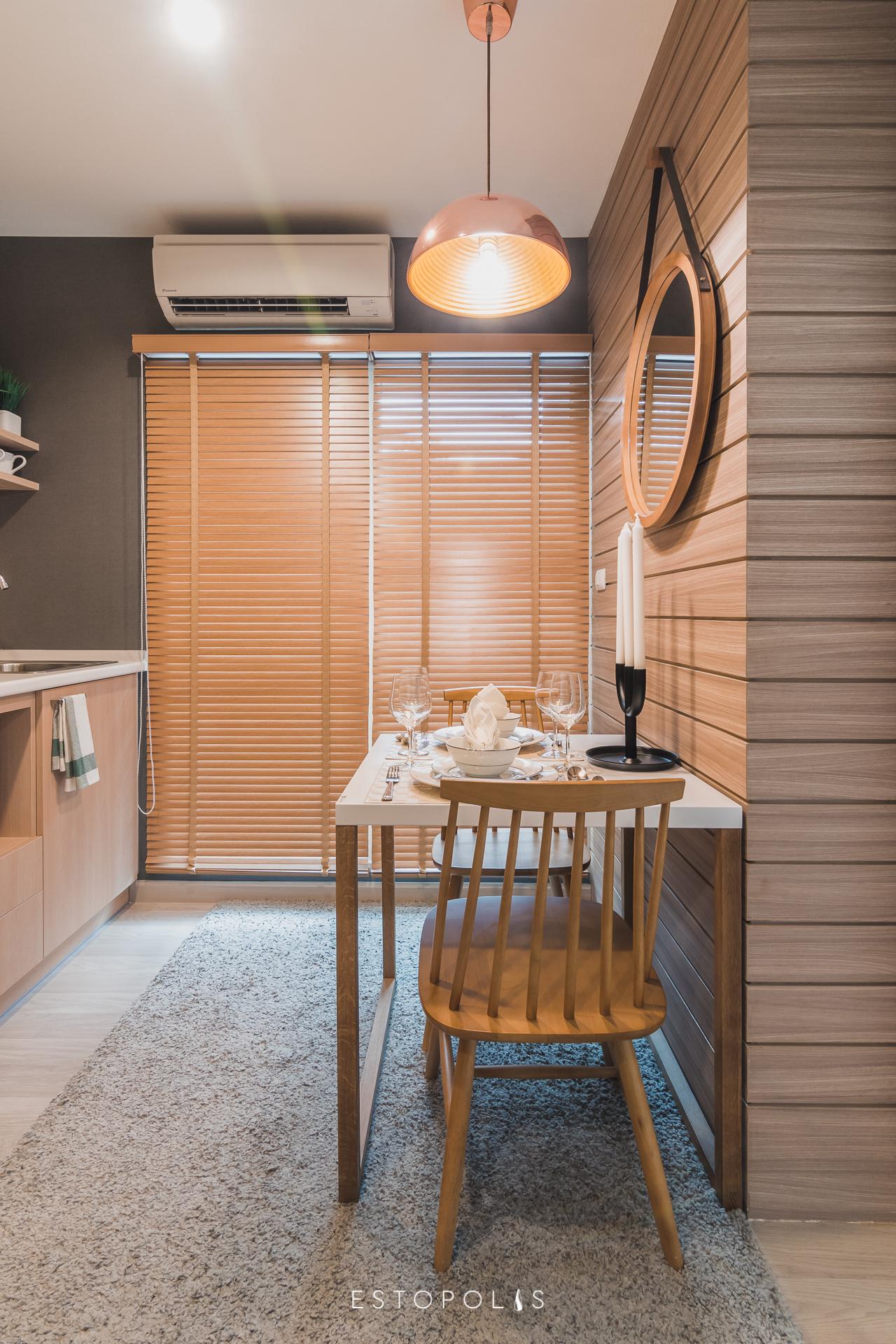 "พื้นที่ครัว" กว้างขวางพอให้เราจัดมุมรับประมานอาหารได้สบายๆ เหมาะสำหรับวันว่างที่ไม่อยากออกไปไหน ใช้เวลาพักผ่อนอยู่ในห้องกัน