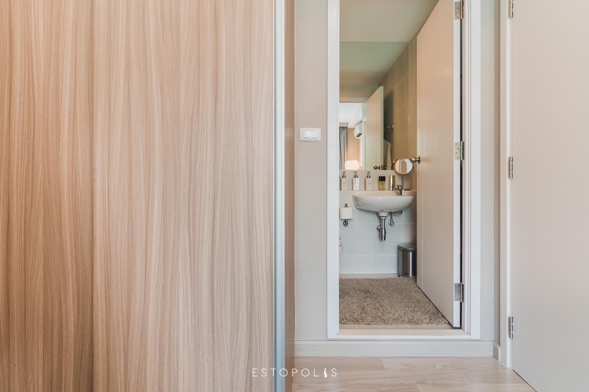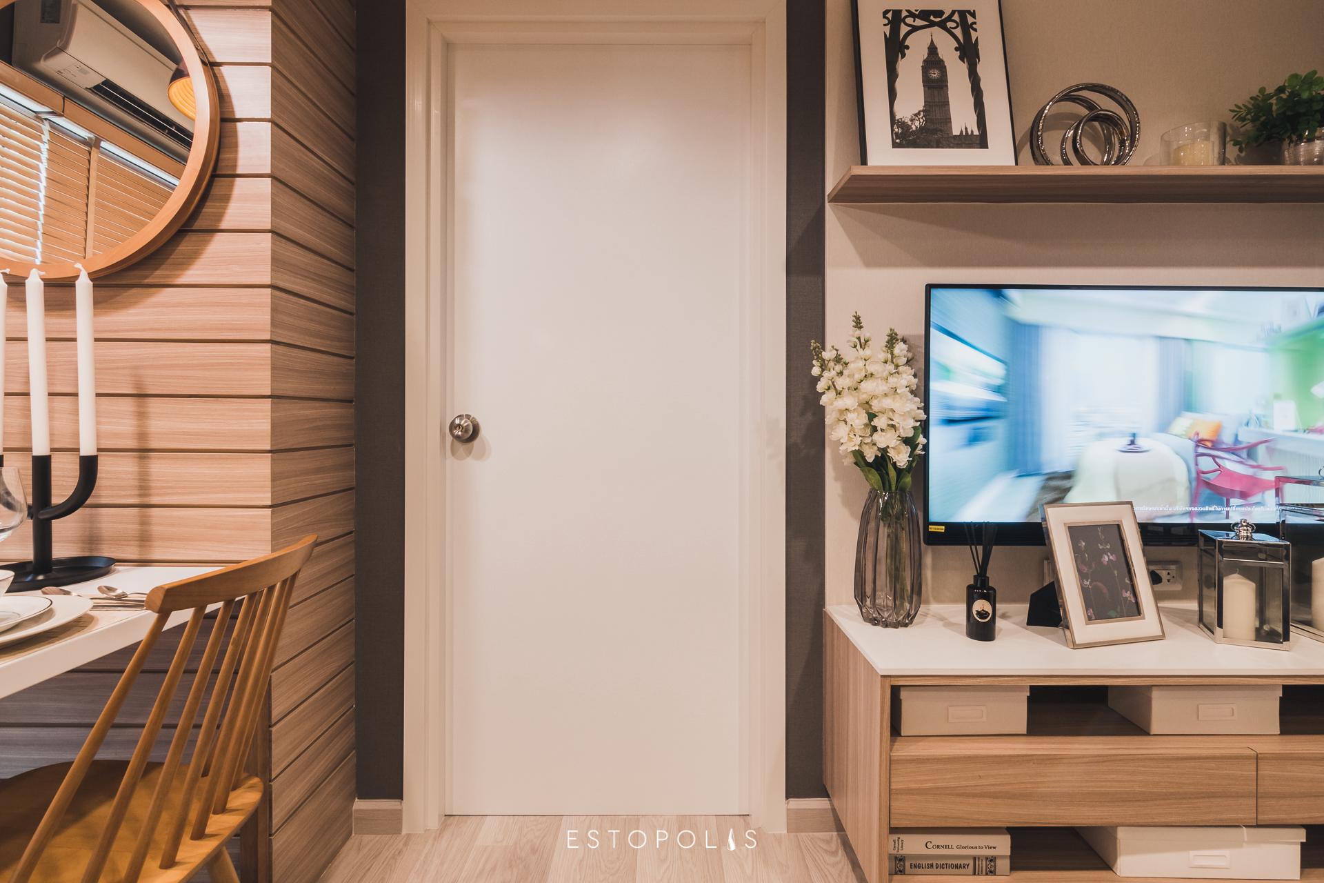 เมื่อกลับเข้าในห้องพักจะเจอทางเข้า ห้องนอน ปิดประตูมิดชิด แบ่งพื้นที่ห้องชัดเจน ให้ความเป็นส่วนตัวได้มากกว่าห้องแบบ Studio เหมาะสำหรับผู้ที่ไม่ชอบความวุ่นวาย