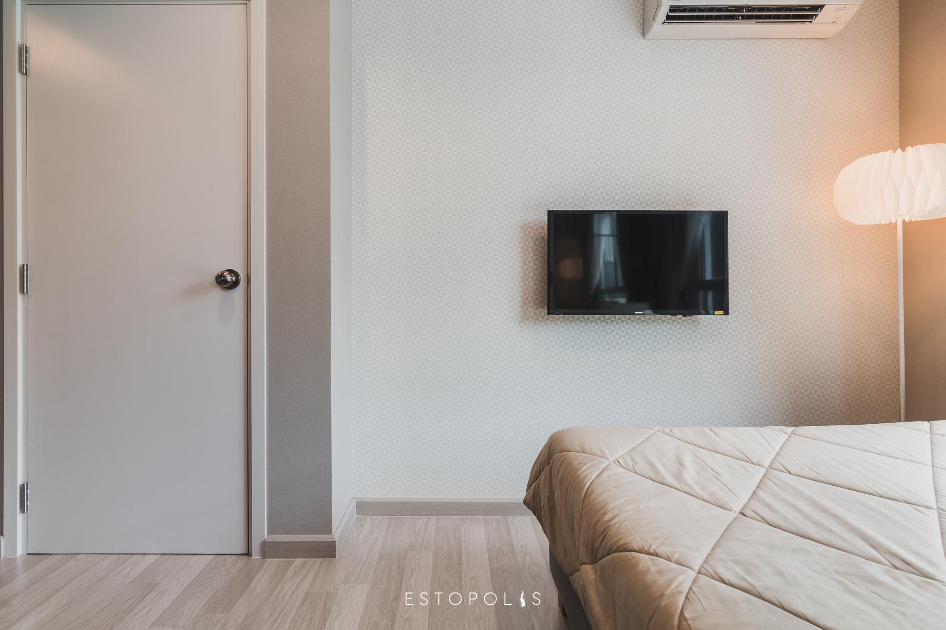 ปลายเตียงติดตั้งระบบเคเบิล (Cable) พร้อมใช้งานทีวีแบบแขวนผนัง และเรายังสามารถบิลท์อินชั้นวาง , ของแต่งห้อง หรือกรอบรูปได้ตามใจ