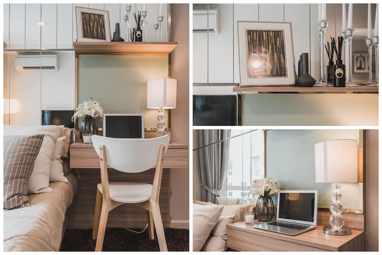 นอกจาก "โต๊ะทำงาน" แล้ว เรายังตกแต่งให้เป็นมุมโต๊ะเครื่องแป้ง ชั้นหนังสือ หรือ walk in closet ก็ได้เช่นกัน