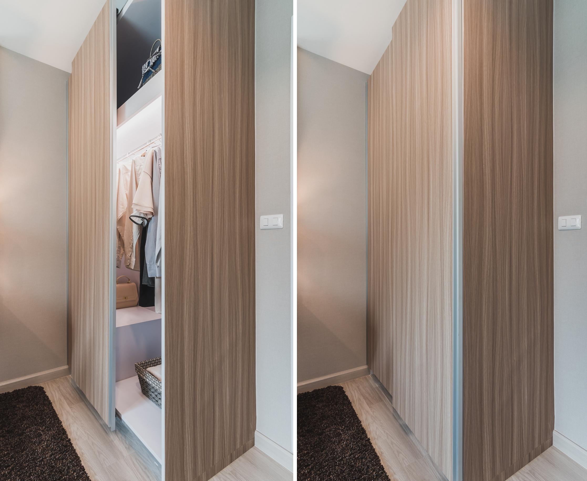 ส่วนตู้เสื้อผ้าบิลท์อิน (Built in) ของทางโครงการ Plum Condo Chokchai 4 (พลัมคอนโด โชคชัย 4) จะให้กับห้องจริงด้วย ตู้ตัวสูงติดเพดาน หน้าบานแบบเลื่อนเปิดสไลด์ ทำให้ไม่เปลืองพื้นที่ห้องนอน ทั้งยังได้ฟังก์ชั่นครบ ราวแขวน , ช่องเก็บของ และลิ้นชัก