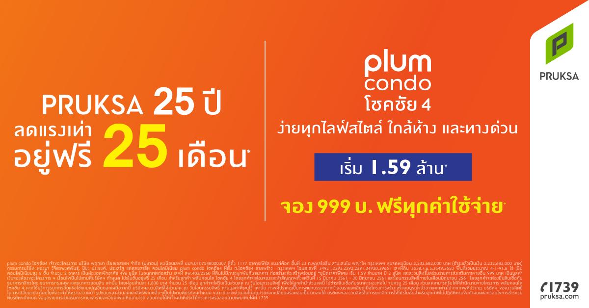 และสำหรับท่านที่สนใจ ช่วงนี้ทางโครงการก็กำลังจัดแคมเปญแรงที่สุดแห่งปี ฉลองพฤกษา 25 ปี อยู่ฟรี 25 เดือน จองเพียง 999 บาทเท่านั้น* แถมฟรีทุกค่าใช้จ่าย*