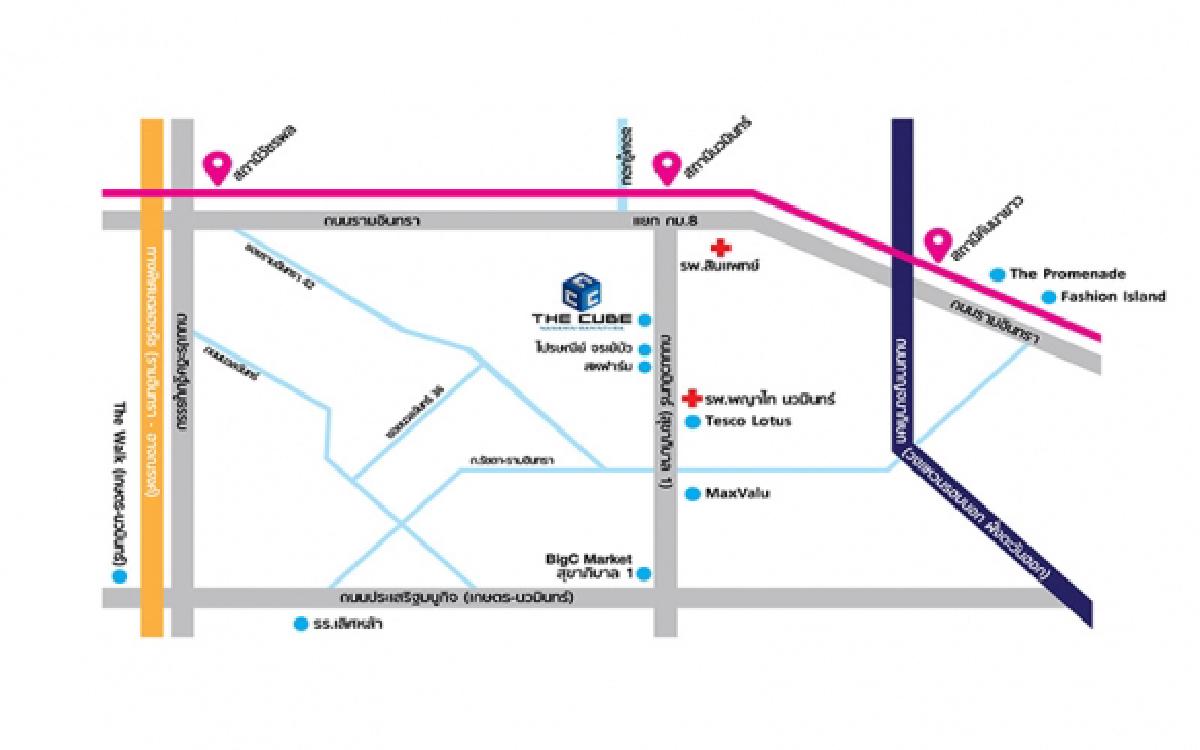 ทำเล : โครงการ The cube นวมินทร์ - รามอินทรา ค่อนข้างสะดวกกับคนที่ต้องการเดินทางโดยการขนส่งสาธารณะ และ รถยนต์ส่วนตัว เพราะในอนาคตจะมีรถไฟฟ้าสายสีชมพู สถานีนวมินทร์ อยู่ไม่ไกลตัวโครงการ อีกทั้งถนนรามอินทรายังมีเส้นทางเข้าสู่ใจกลางเมืองหรือออกนอกเมืองที่สะดวก เชื่อมต่อกับถนนเส้นสำคัญหลายสาย เช่นเชื่อมต่อสู่เส้นลาดพร้าว , เกษตร - นวมินทร์ , พหลโยธิน และยังมีถนนวงแหวนรอบนอกด้านตะวันออก สามารถเชื่อมต่อกับเส้นมอเตอร์เวย์ได้เช่นกัน