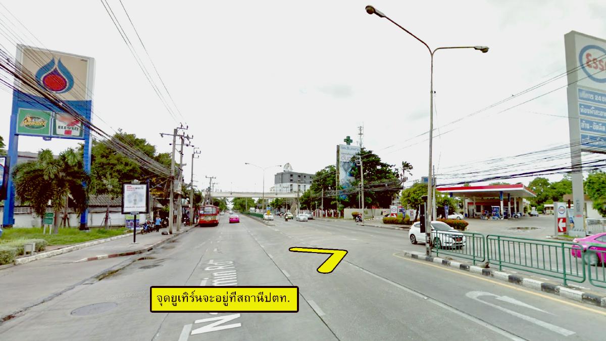 จุดสังเกตเมื่อเห็นปั้ม ปตท.ขวามือ ปั้มเอสโซ่ อยู่ซ้ายมือ ให้ชิดขวาแล้วกลับรถ