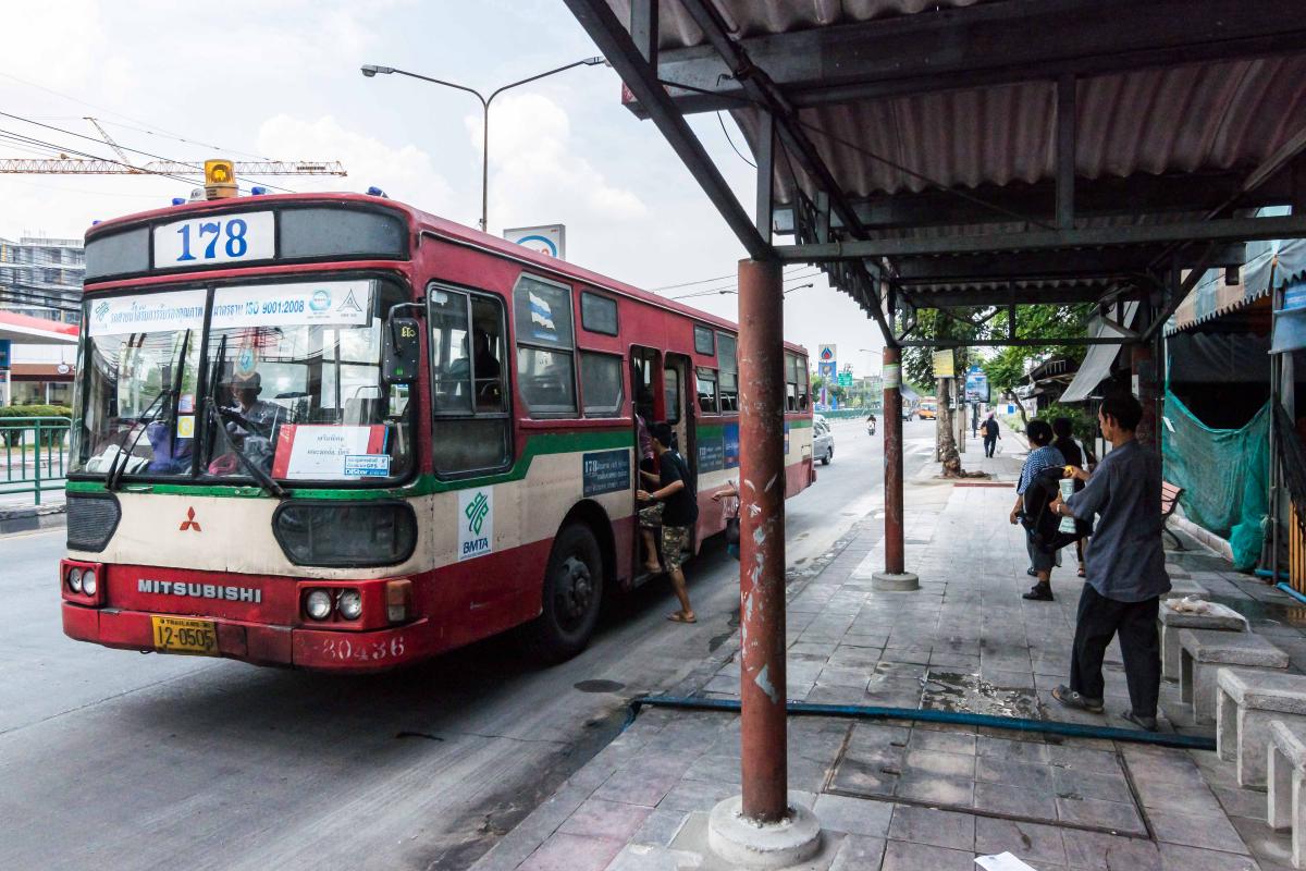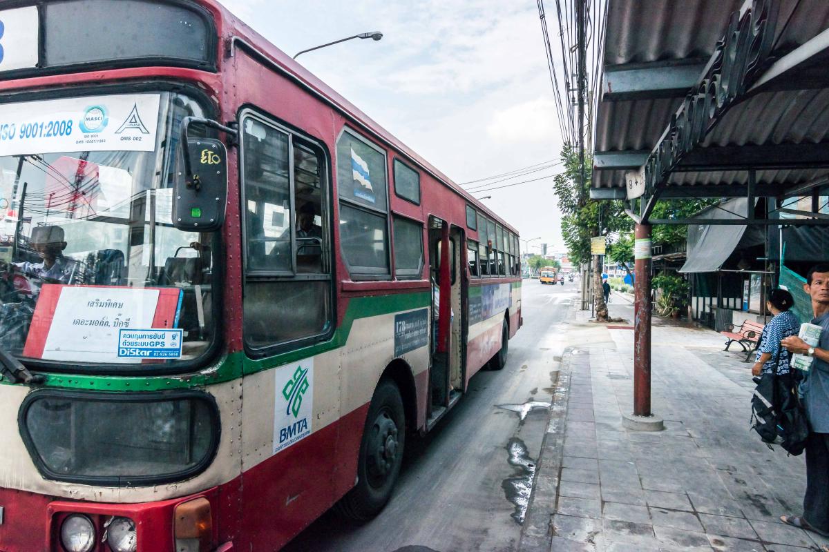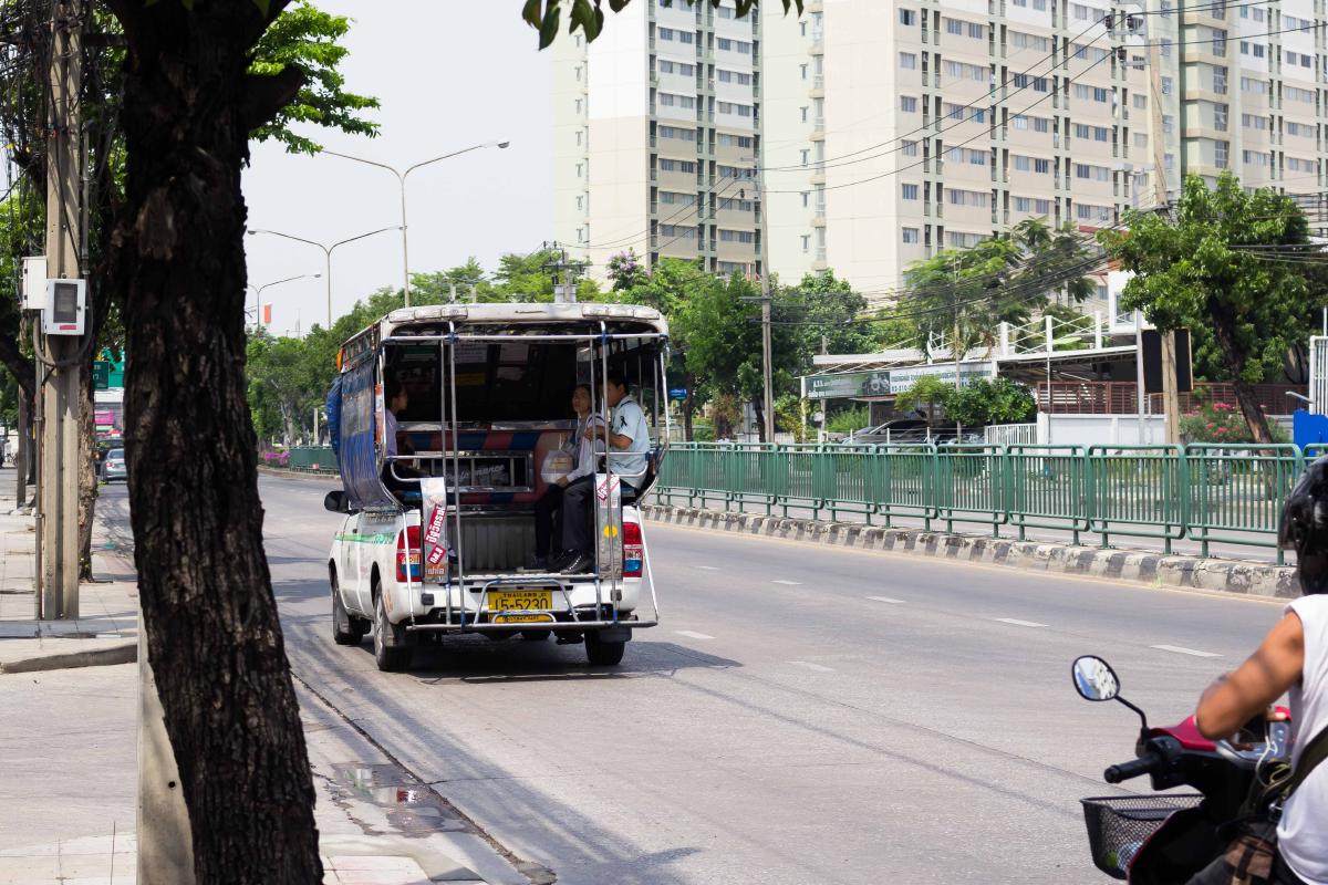 อีกหนึ่งวิธีการเดินทางที่มีในย่านนี้คือรถสองแถวประจำทาง