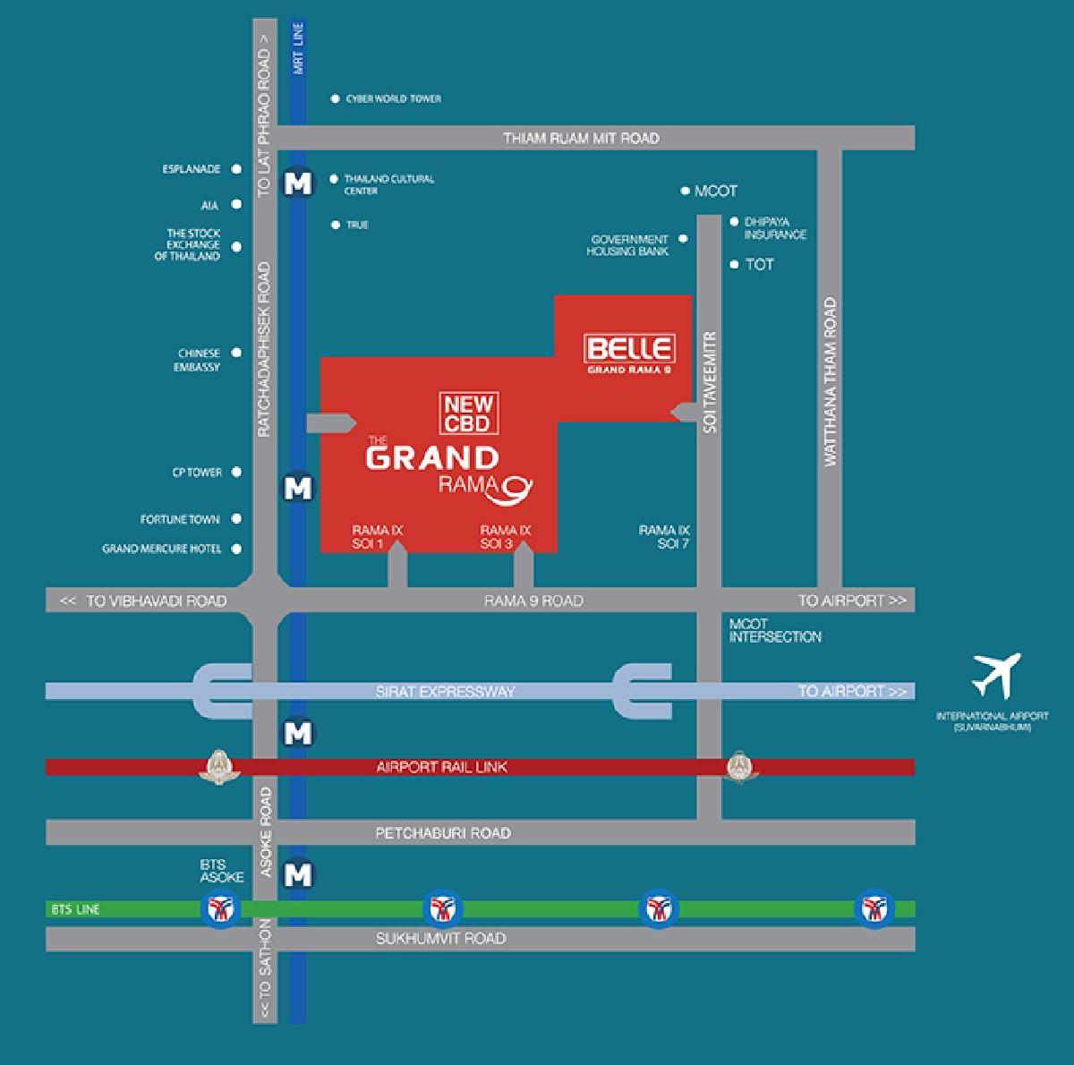 คอนโด Belle Grand Rama 9 (เบ็ล แกรนด์ พระราม 9) ตั้งอยู่ในเวิ้งของโครงการเมกะโปรเจ็กต์ของย่านพระราม 9 ในพื้นที่นี้จะประกอบไปด้วย