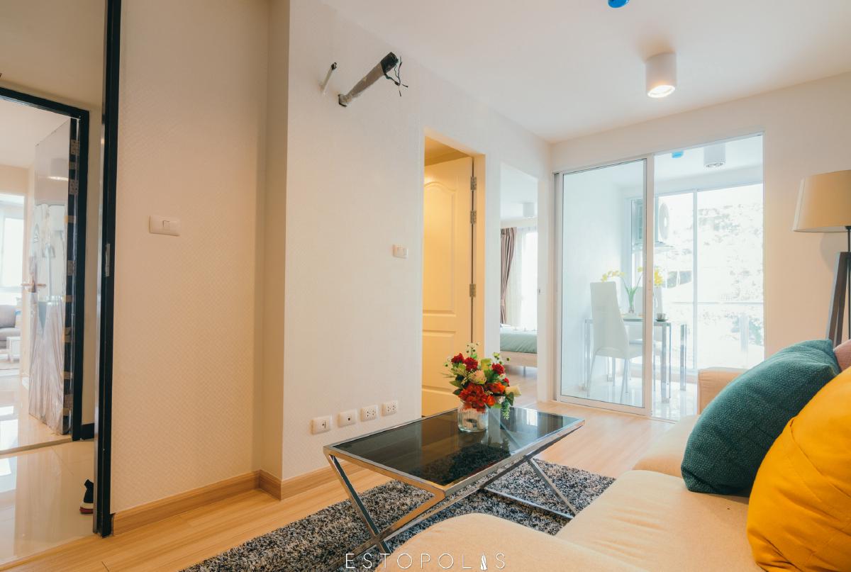 ในภาพนี้เป็นห้องตัวอย่าง ที่ชั้น 2 ซึ่งวิวที่เห็นอาจจะถูกบดบังไปด้วยบ้าน ตึกรอบๆ หากอยู่ประมาณชั้นที่ 3 ขึ้นไปก็จะเห็นวิวที่ชัดเจน ไม่มีอะไรบดบัง